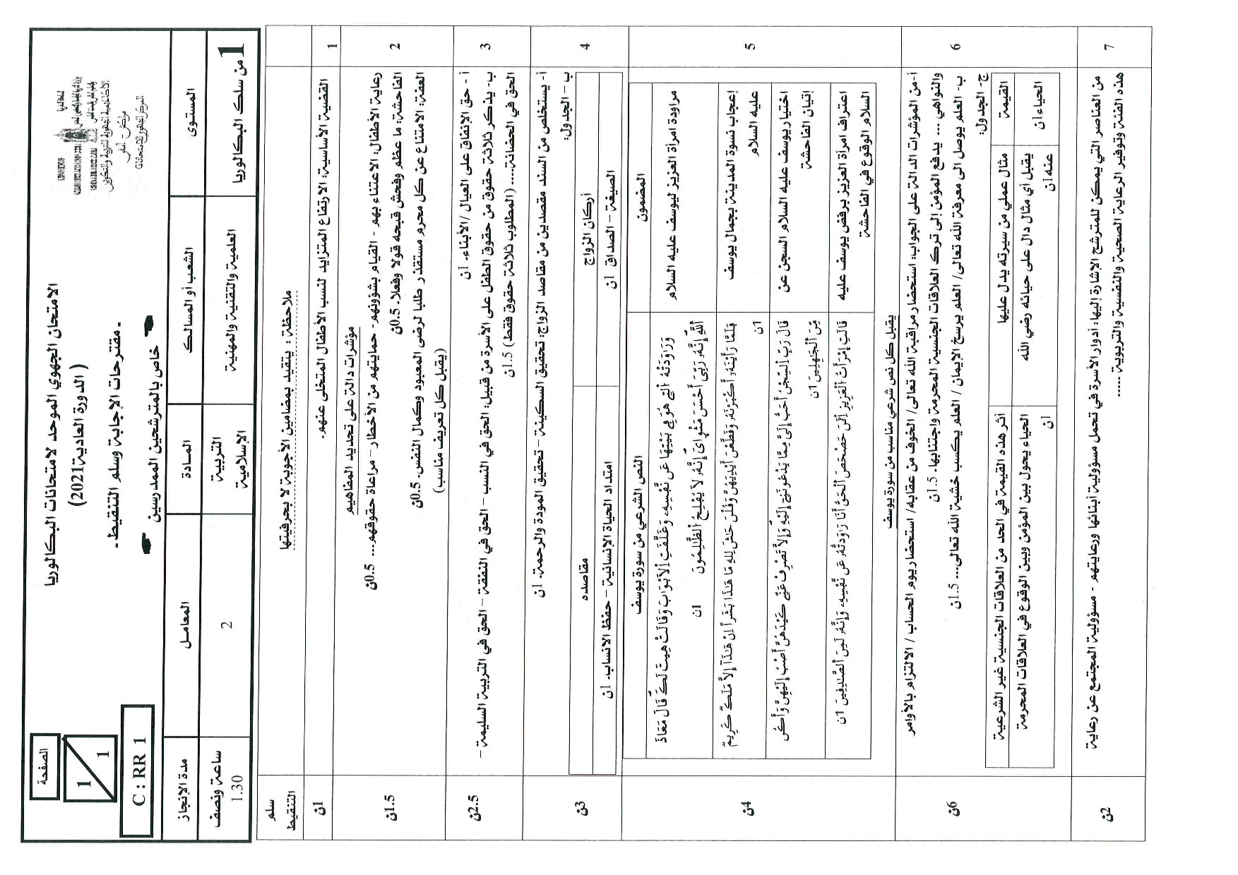 التربية الإسلامية: الأولى باك علوم تجريبية