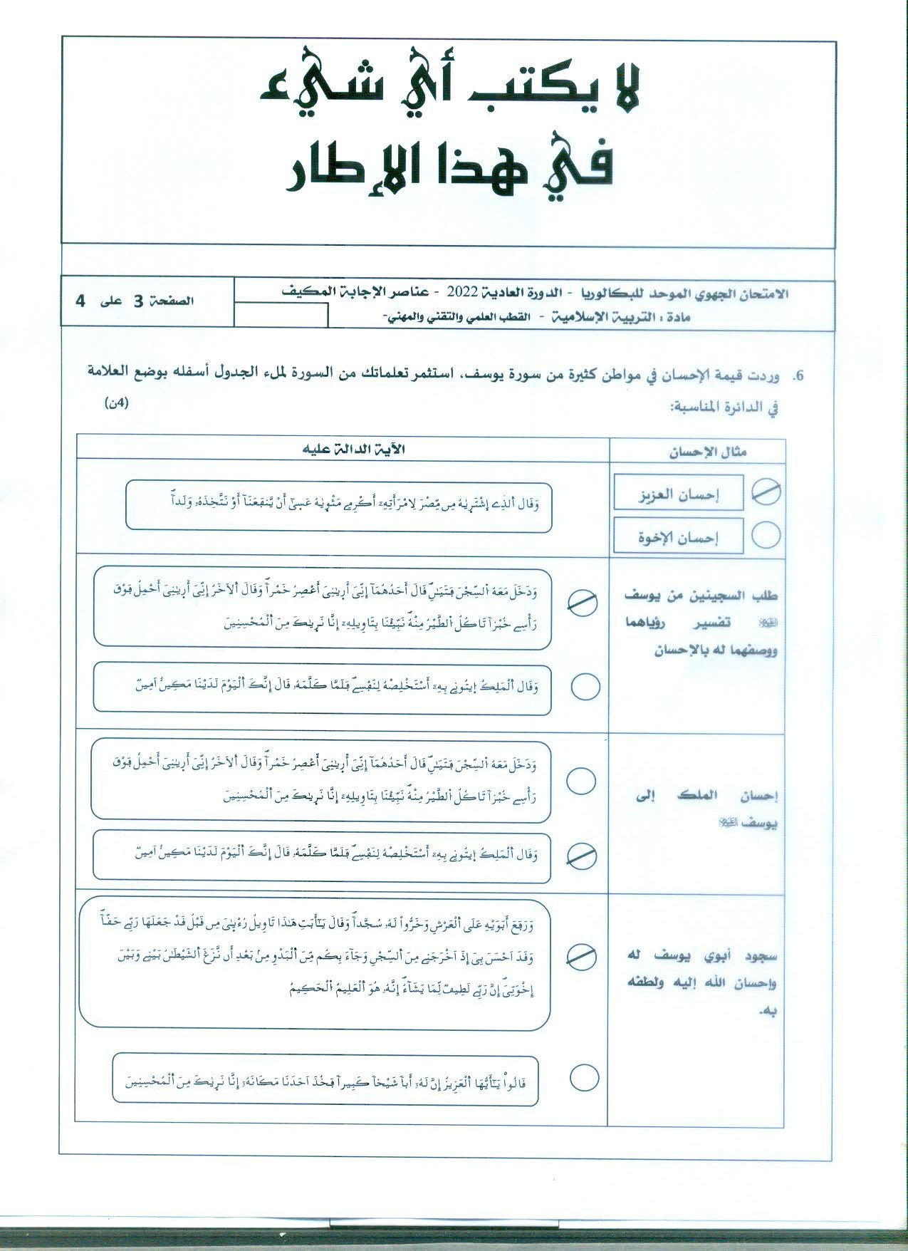 الامتحان الجهوي في التربية الإسلامية (د. العادية) - سوس ماسة 2022 - الموضوع