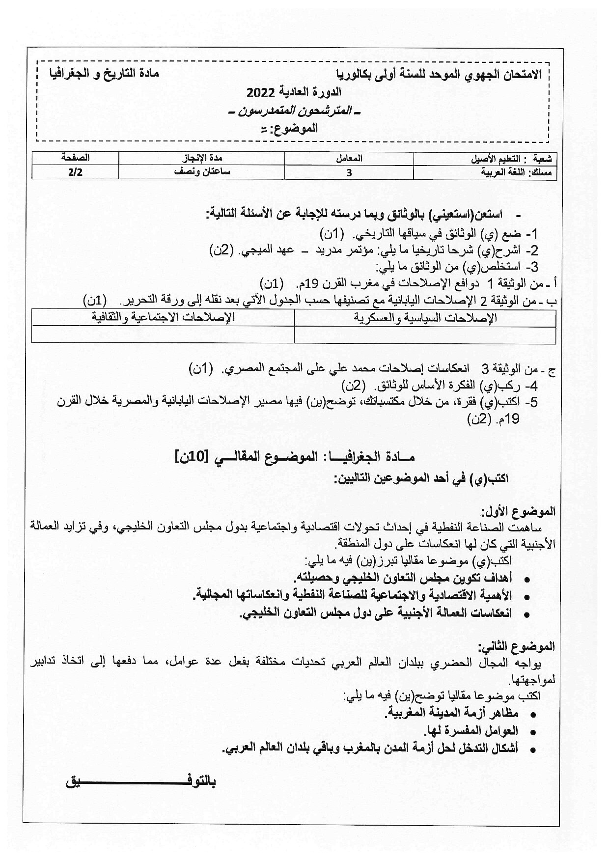 الامتحان الجهوي في التربية الإسلامية (د. العادية) - طنجة تطوان الحسيمة 2022 - الموضوع