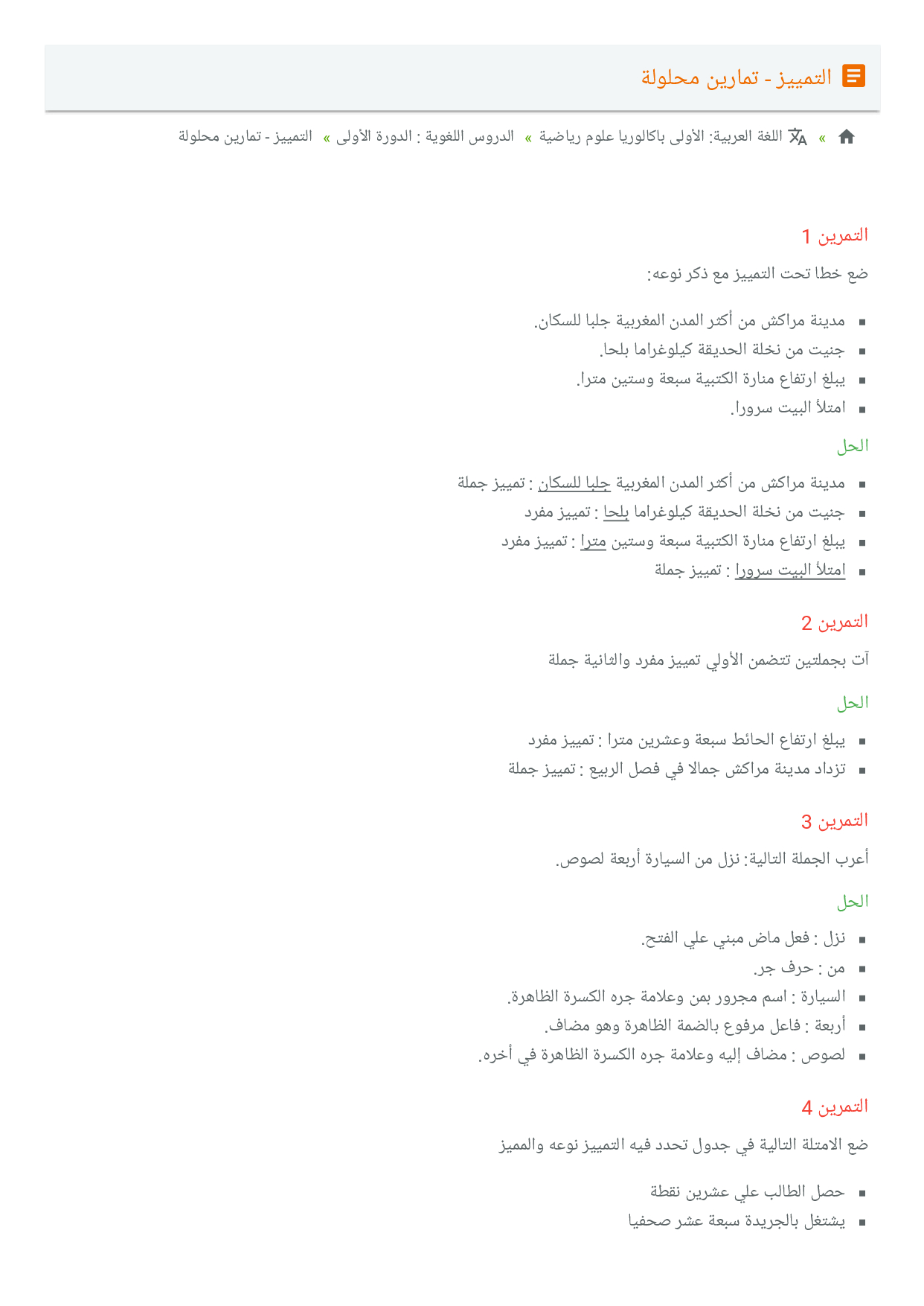 اللغة العربية: الأولى باكالوريا علوم رياضية