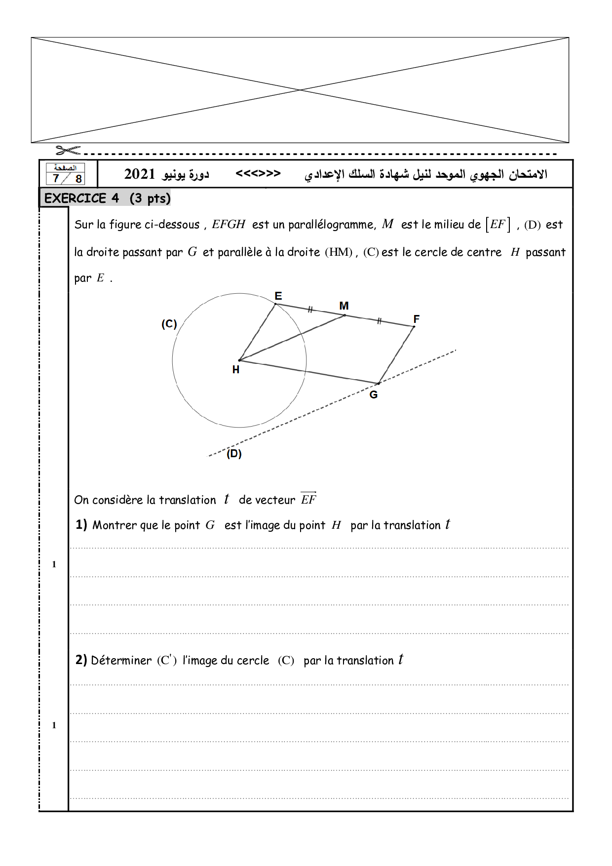 Examen régional Math 2021 (Tanger-Tétouan-Al Hoceïma) - Sujet
