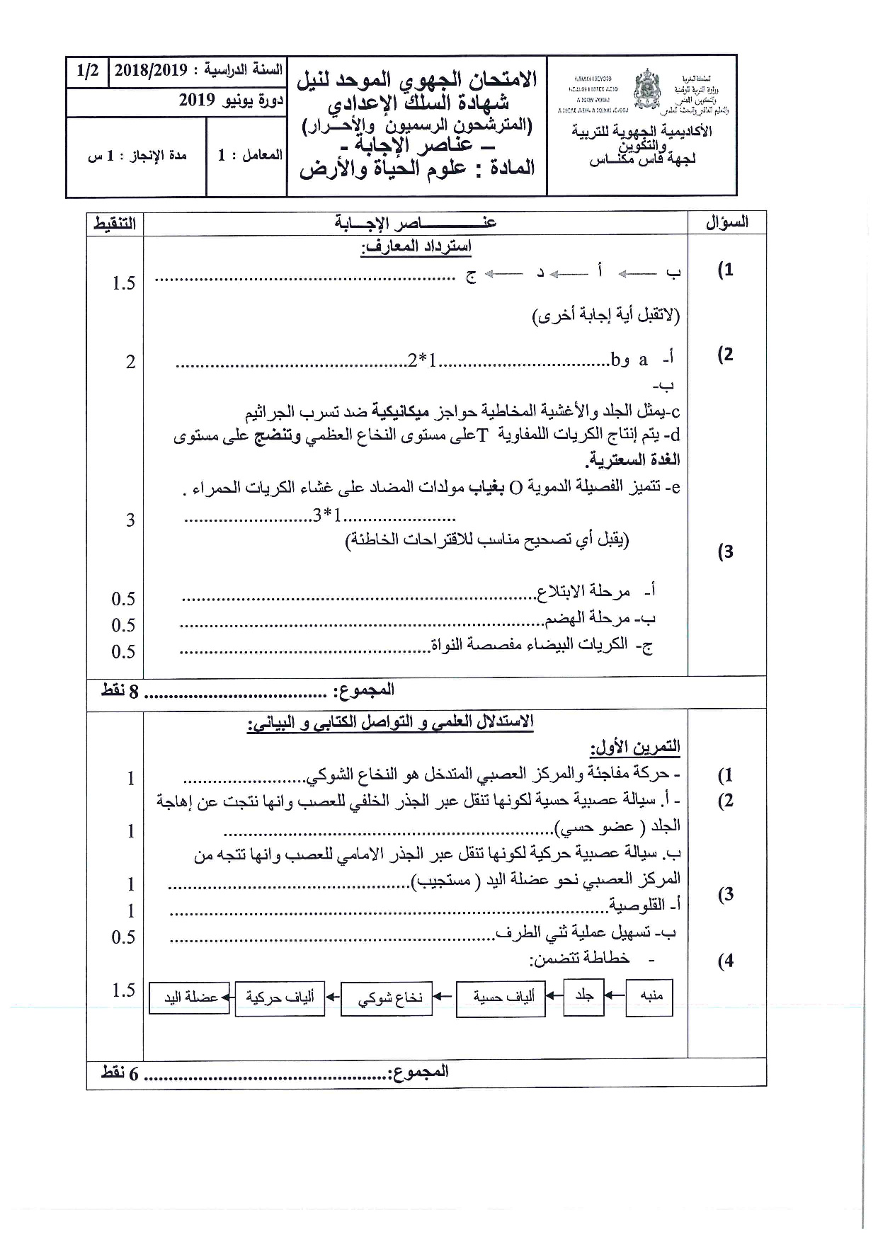 Examen régional SVT 3AC 2019 (Fès-Meknès) - Corrigé