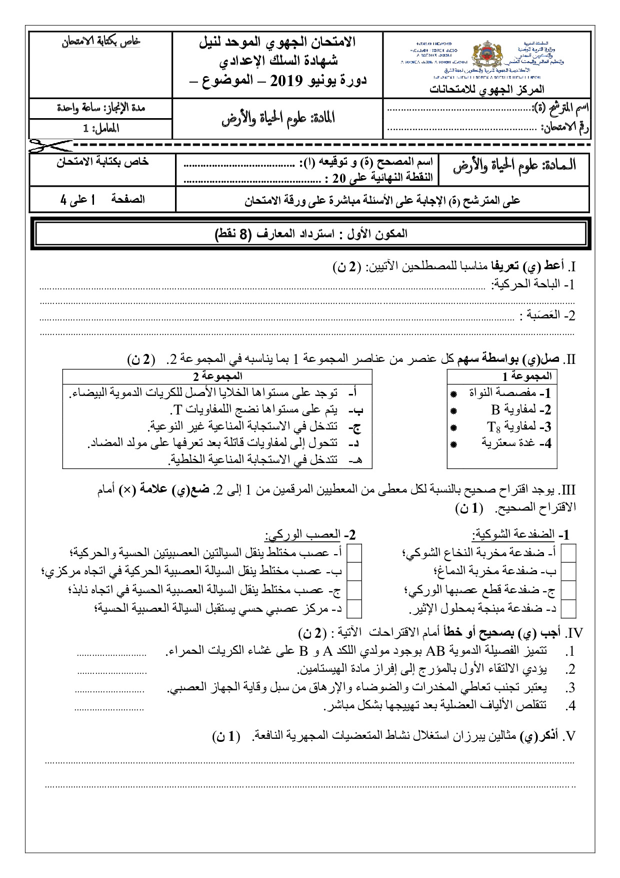 Examen régional SVT 3AC 2019 (Orient) - Sujet