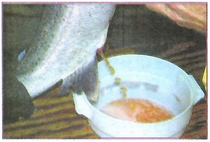 1- زار علي مركز تربية الأسماك فلاحظ مربي السمك يضغط على بطن أنثى سمك التروتة لإخراج سائل، فتساءل عن السبب.