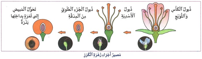 1- ألاحظ الوثيقة لأتعرف مصير أجزاء زهرة الكرز، وأعبر شفهيا :