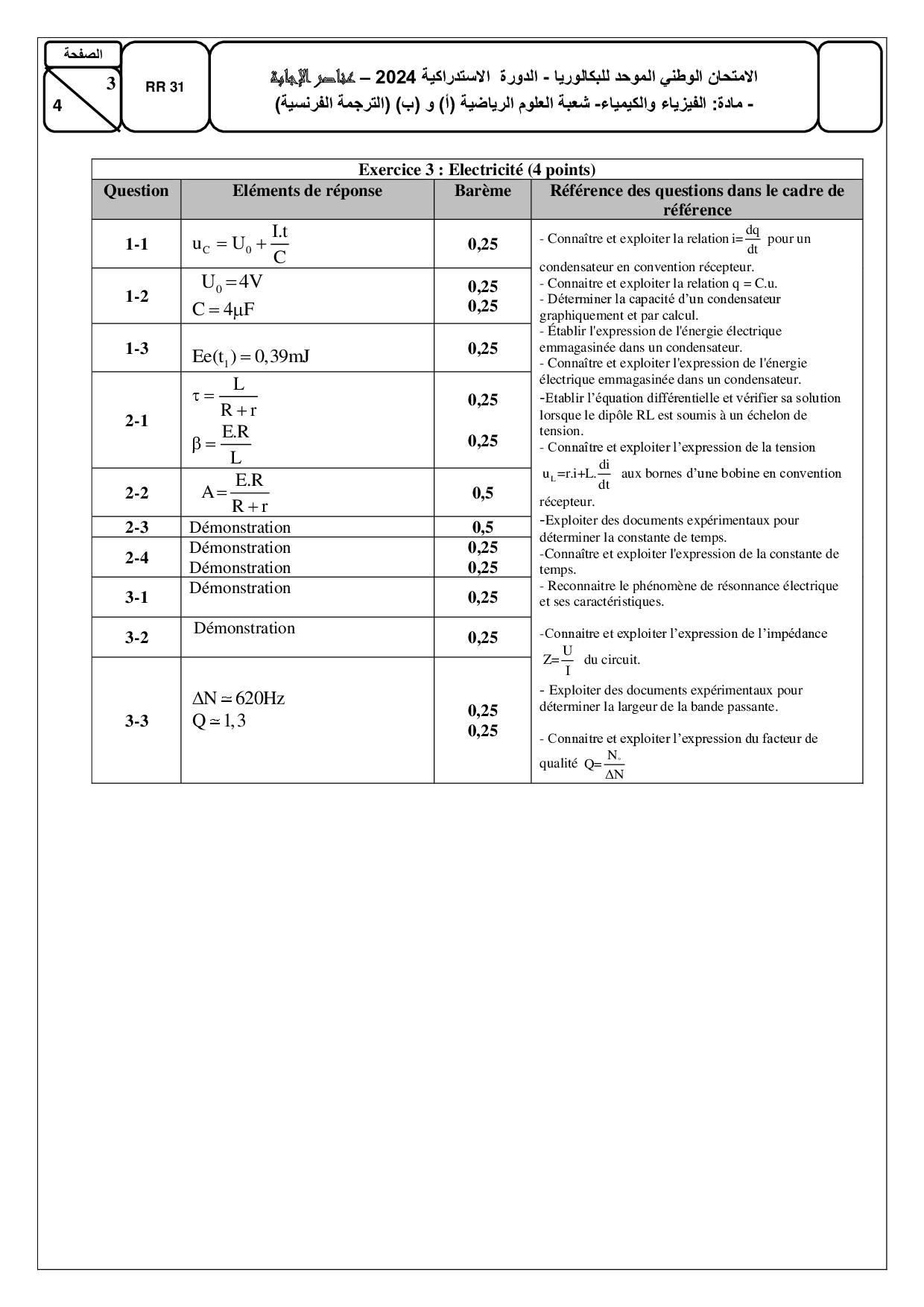 Examen National Physique-Chimie Sciences Maths 2024 Rattrapage - Corrigé