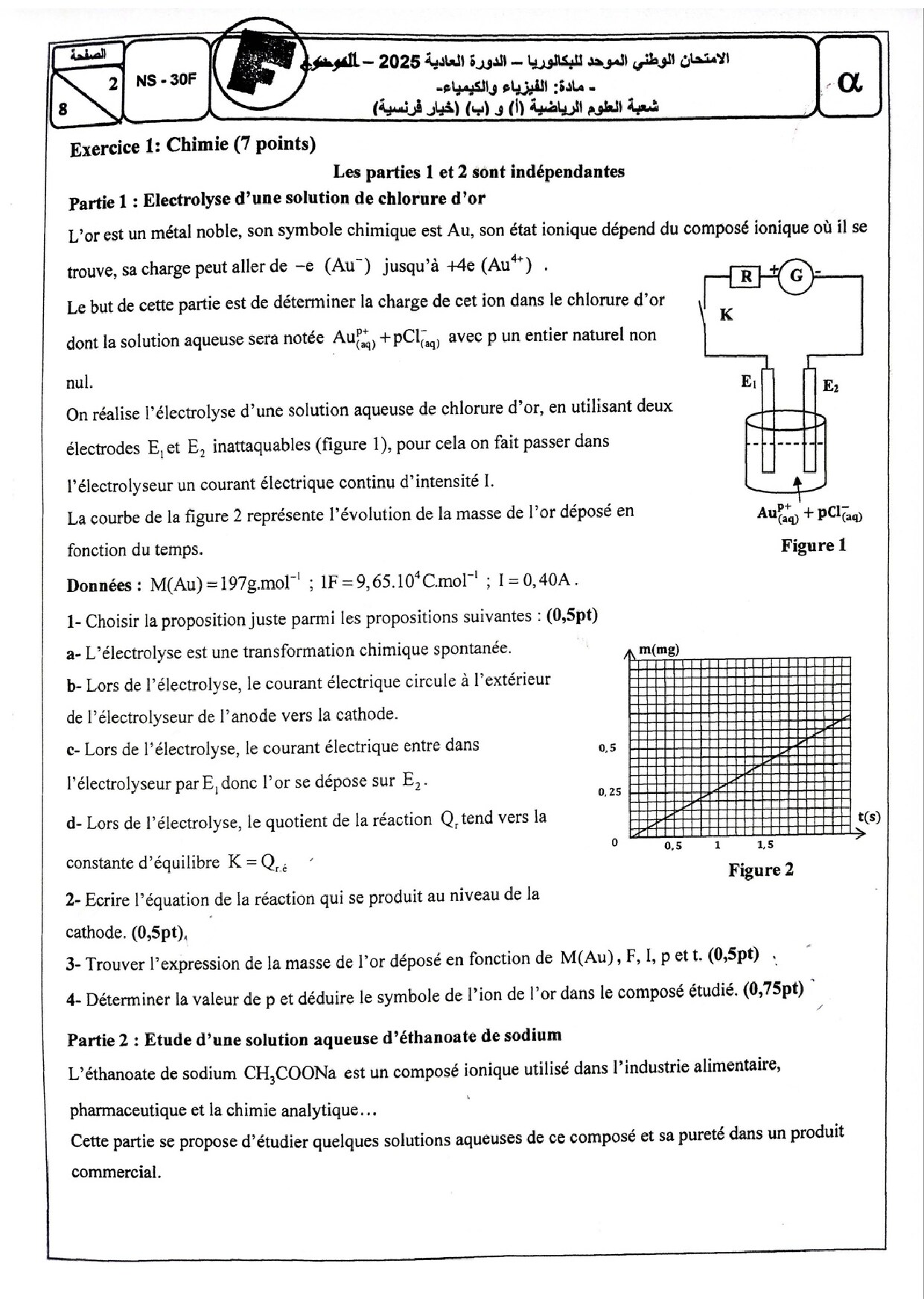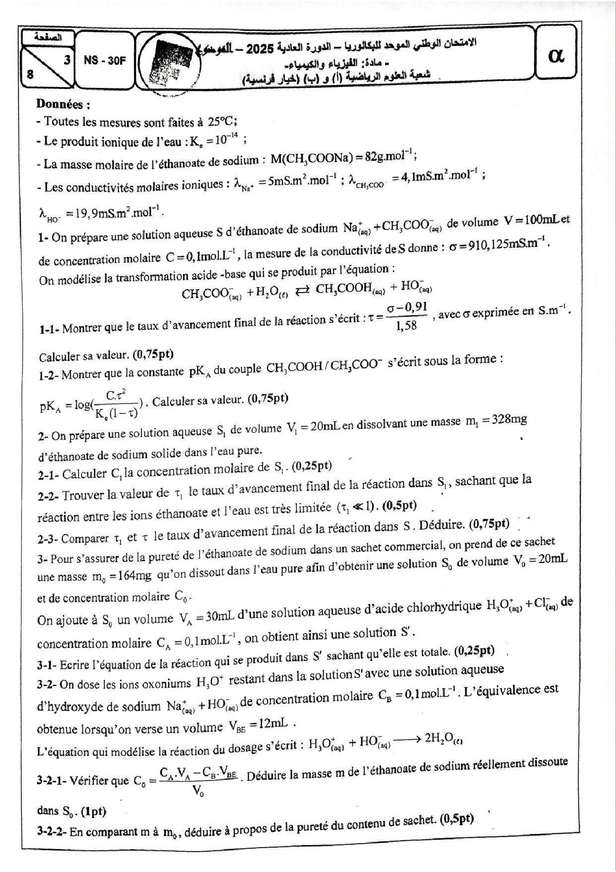 Examen National Physique-Chimie Sciences Maths 2025 Normale - Sujet