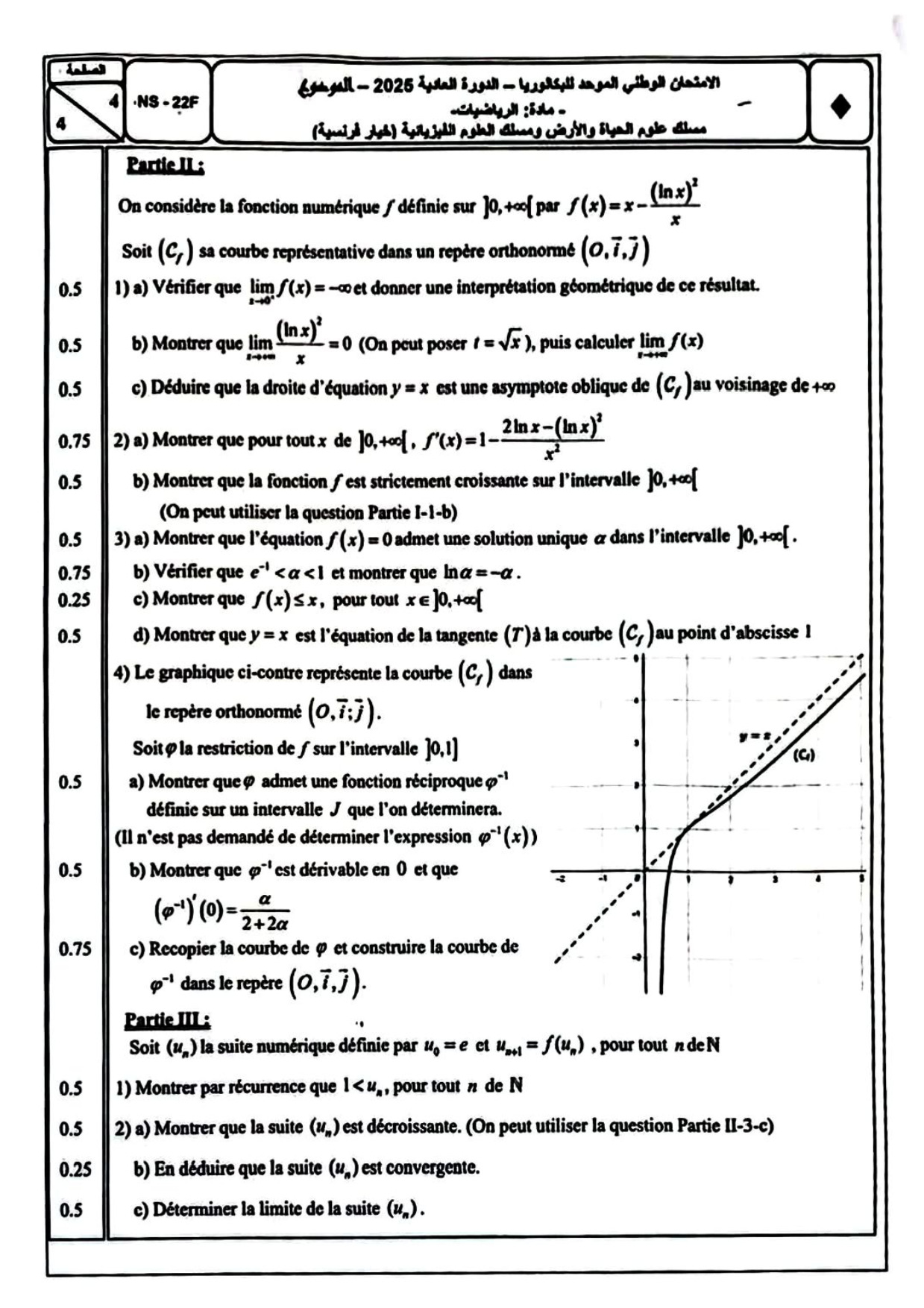 Examen National Maths Sciences et Technologies 2025 Normale - Sujet