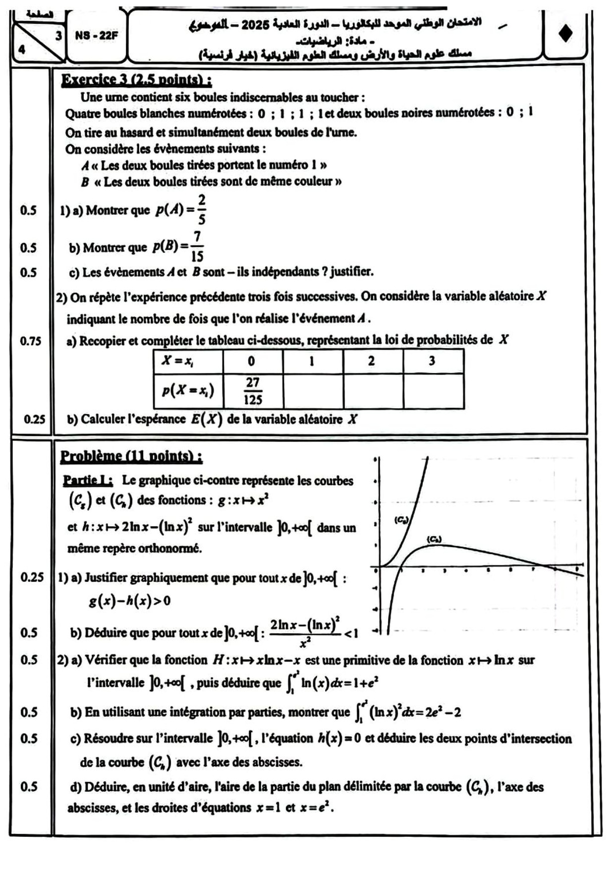 Examen National Maths Sciences et Technologies 2025 Normale - Sujet