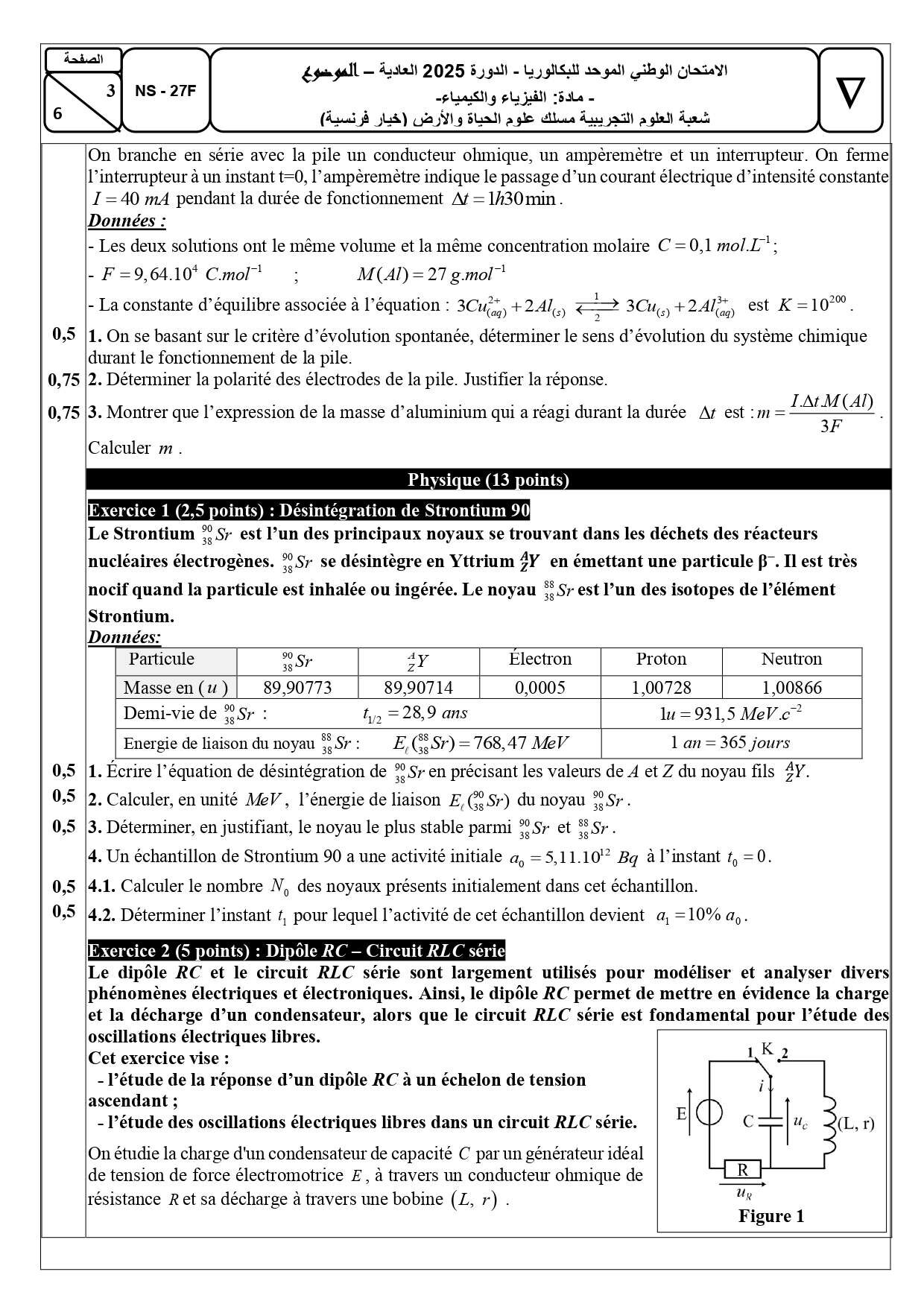 Examen National Physique-Chimie 2 Bac SVT 2025 Normale - Sujet