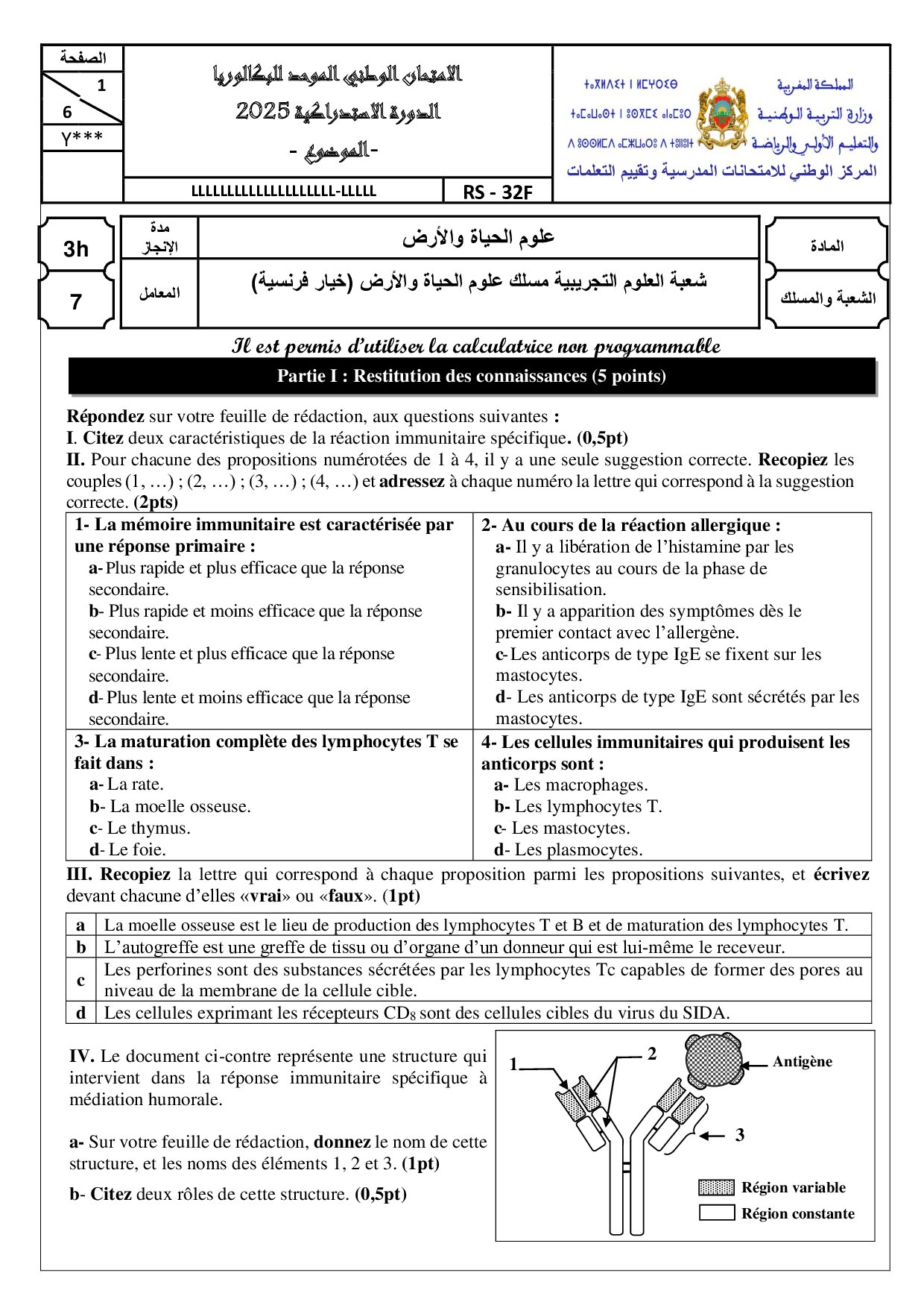 Examen National SVT 2ème BAC SVT 2025 Rattrapage - Sujet