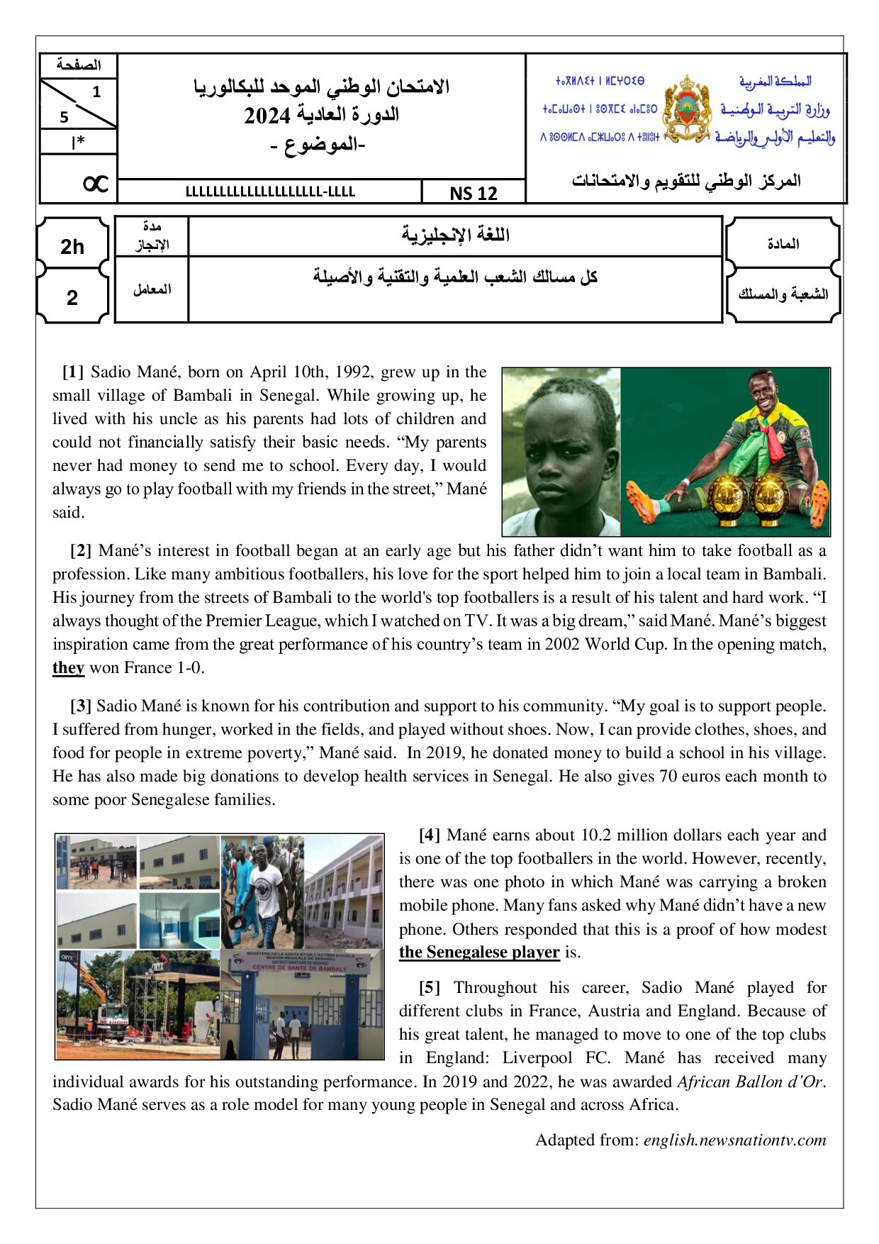 Examen Anglais 2024 Session Normale - Sujet