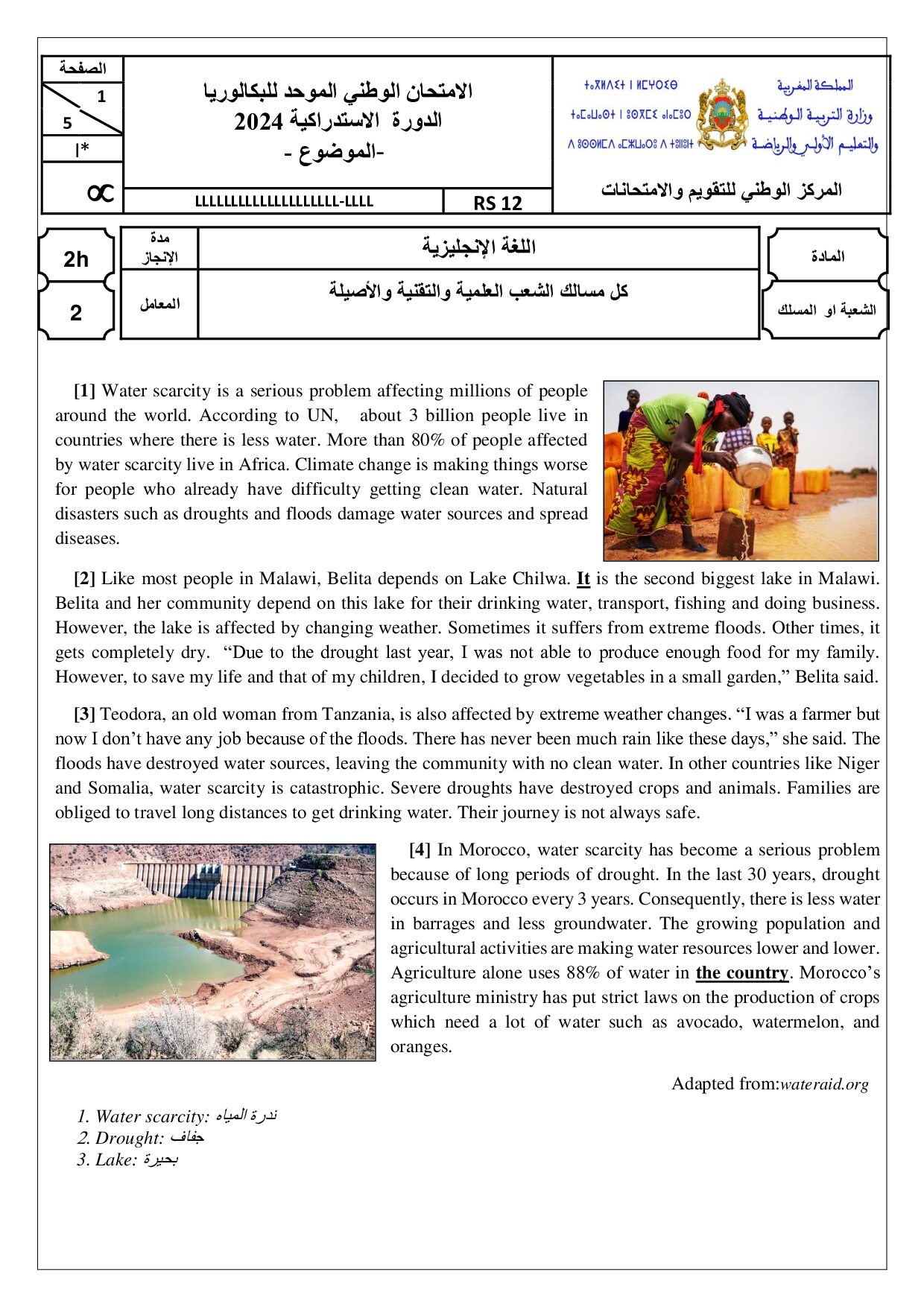 Anglais : 2ème BAC Sciences Mathématiques A