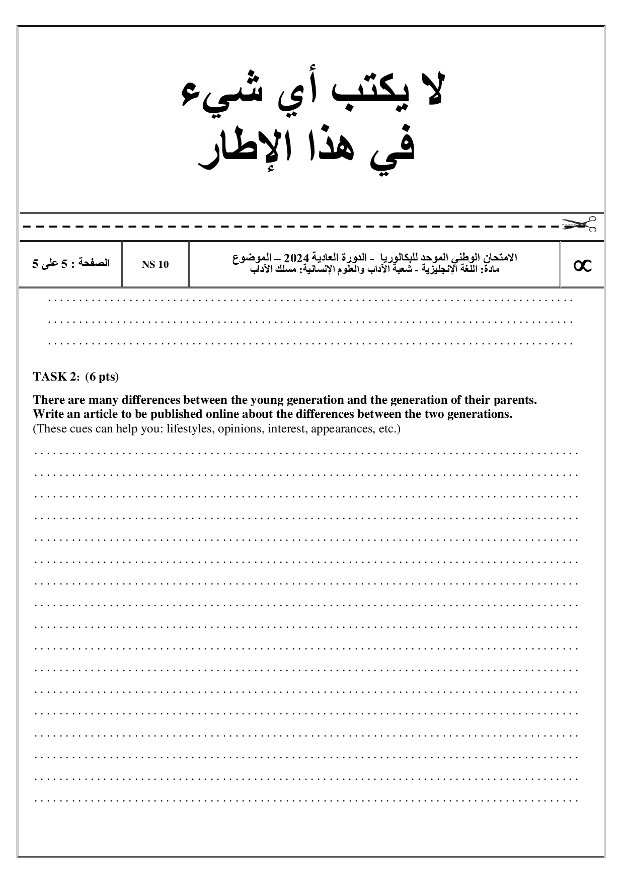 Examen Anglais Lettres 2024 Session Normale - Sujet