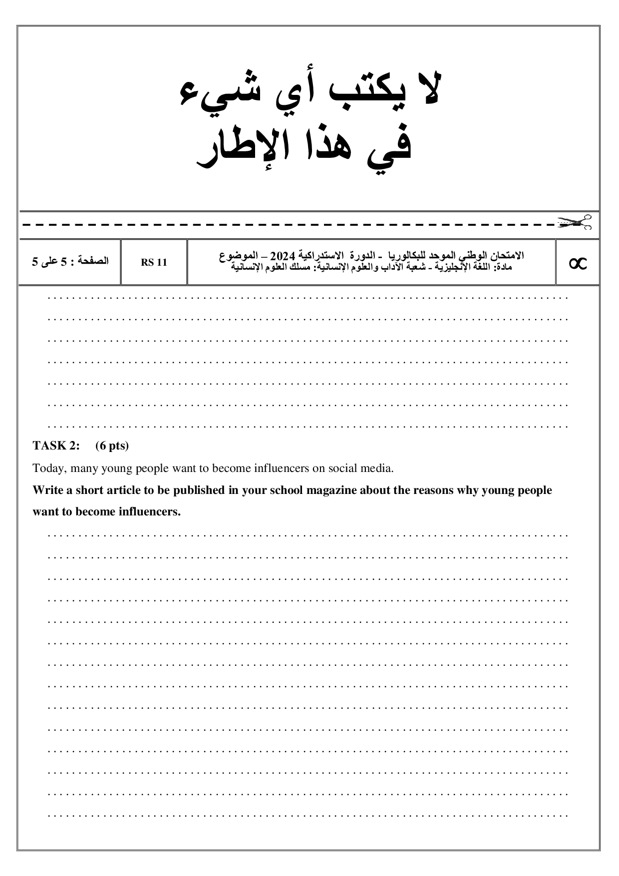 Examen Anglais Science Humaines 2024 Session Normale - Sujet