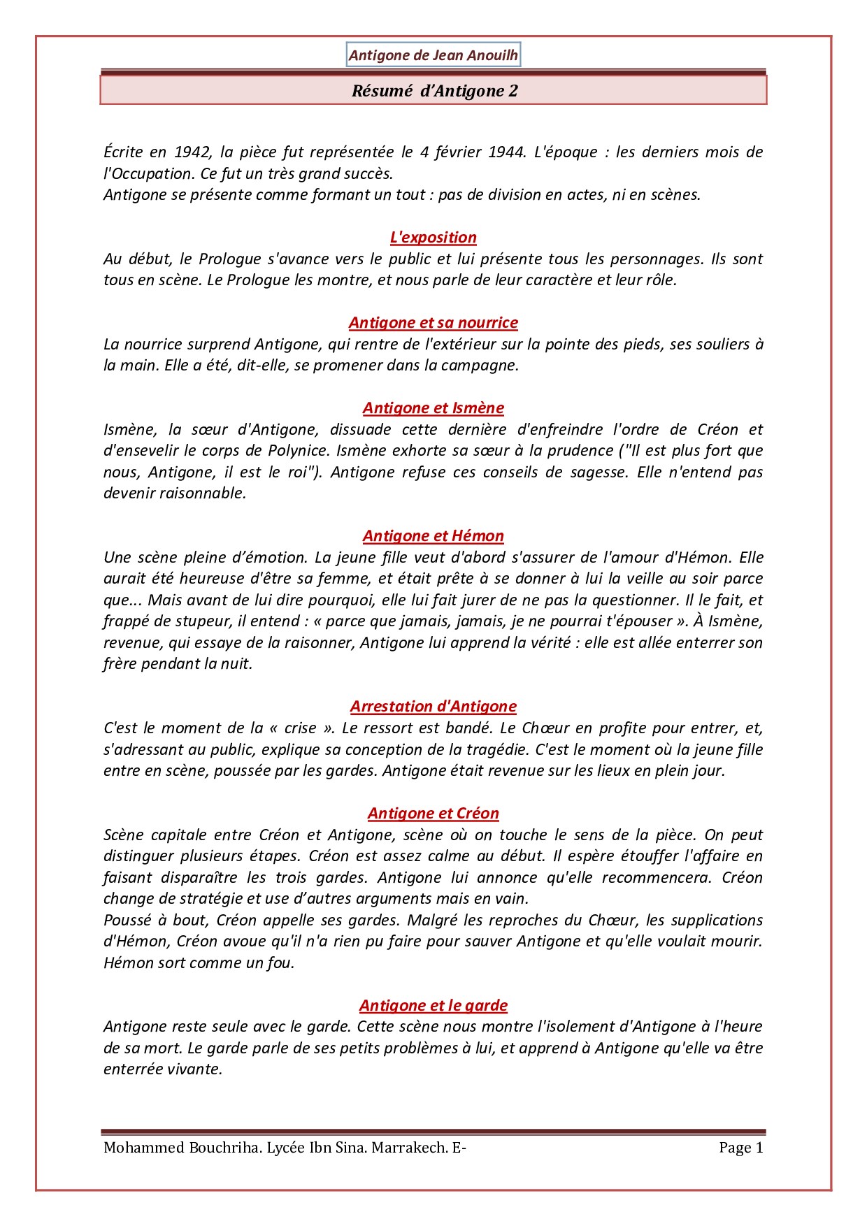 Français: 1er BAC Sciences Mathématiques