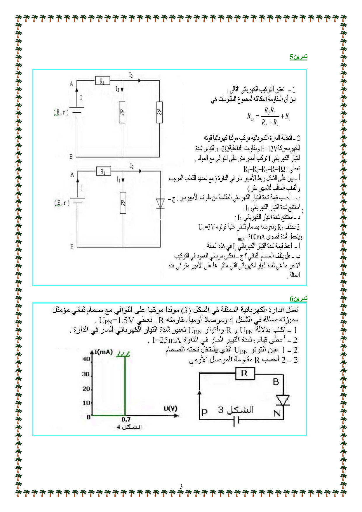 مميزات بعض ثنائيات القطب غير النشيطة - سلسلة التمارين 1