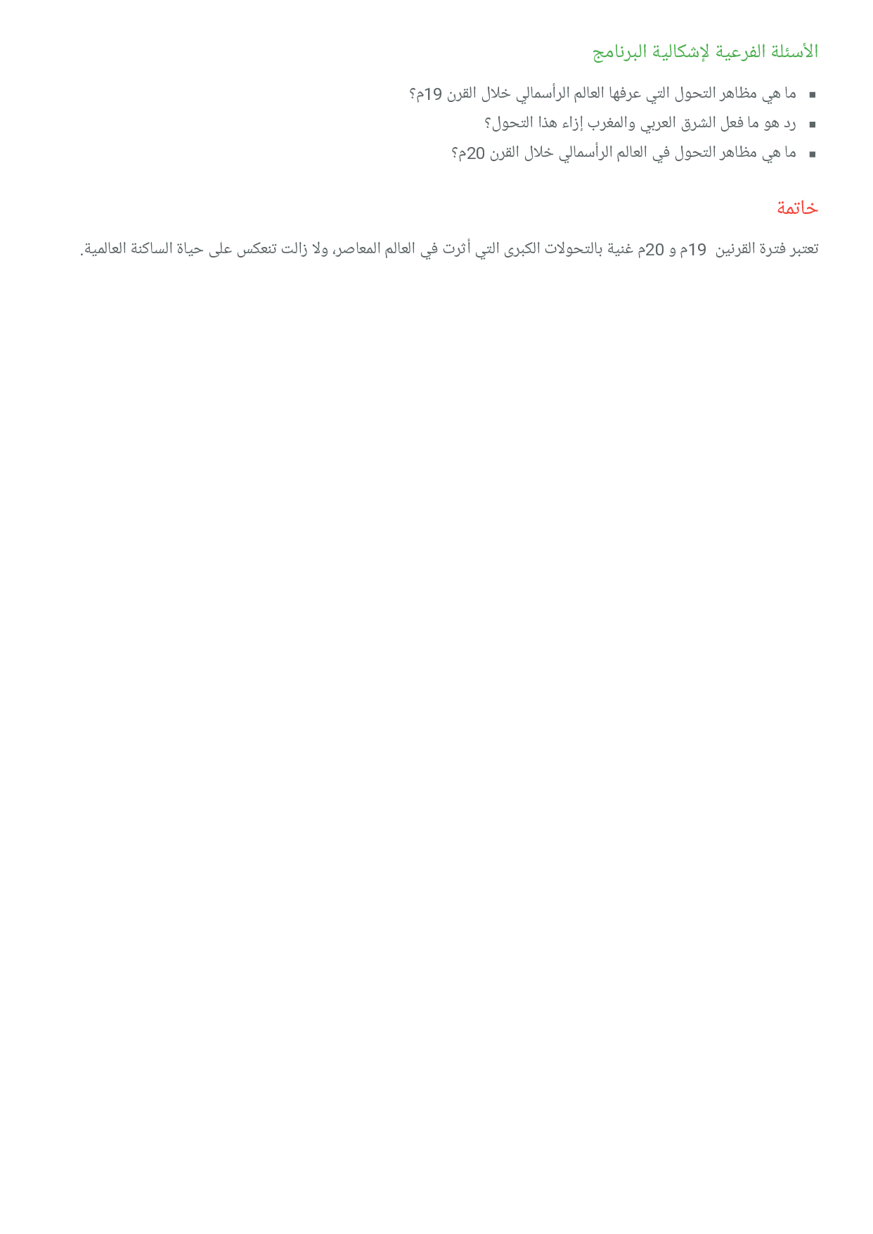 تقديم عام لبرنامج التاريخ: التحولات الكبرى للعالم الرأسمالي وانعكاساتها خلال القرنين 19م و20م