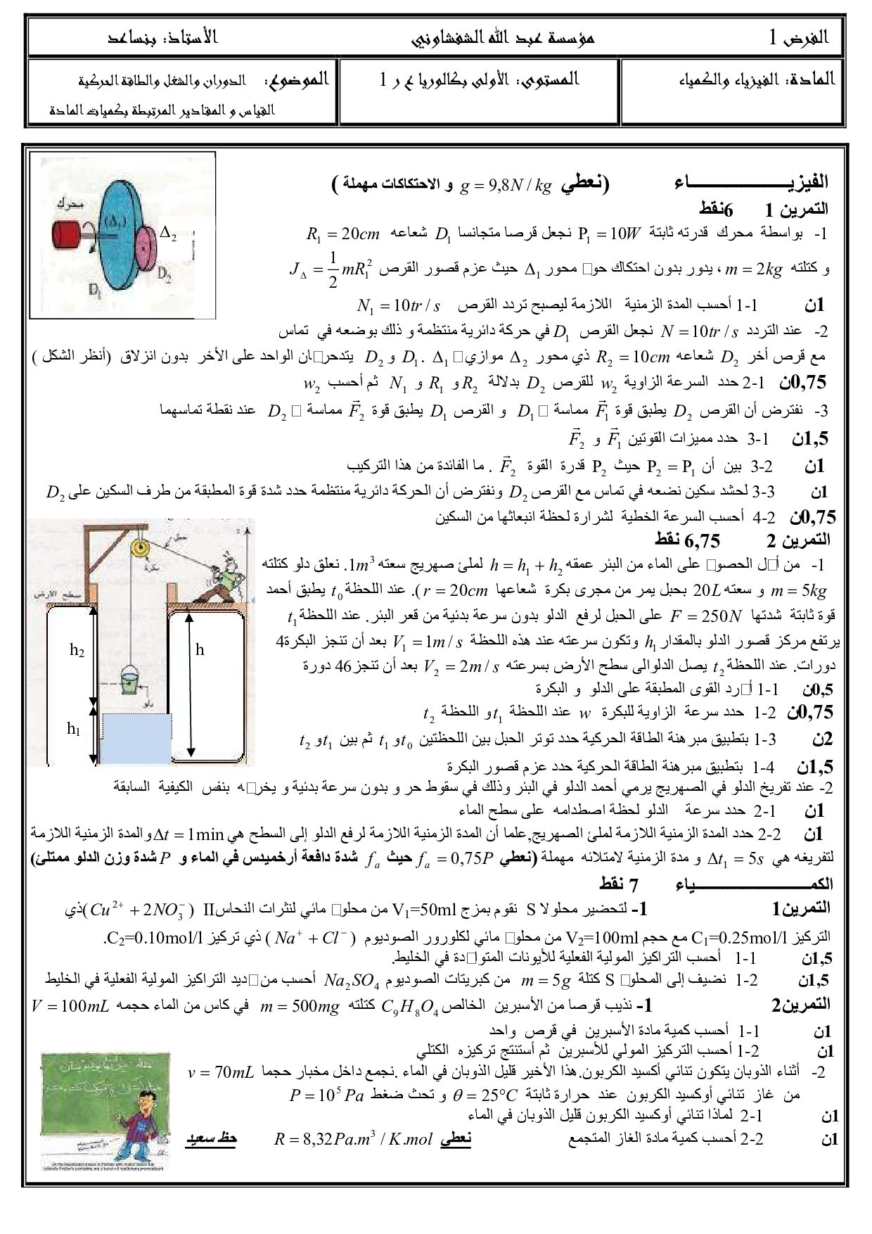 الفرض 1 نموذج 5 - الفيزياء والكيمياء أولى باك علوم رياضية الدورة الأولى