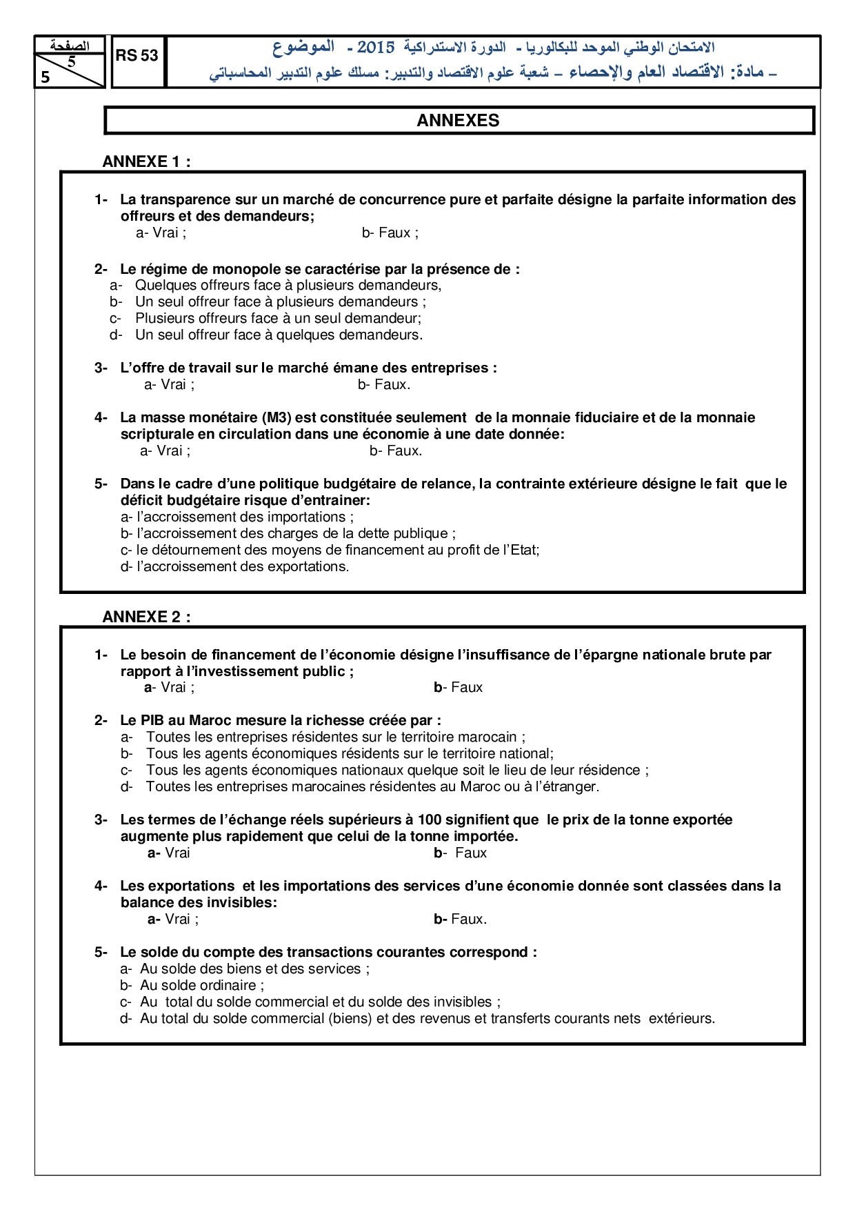 Économie générale et Statistiques : 2ème BAC Sciences de Gestion Comptable (SGC)