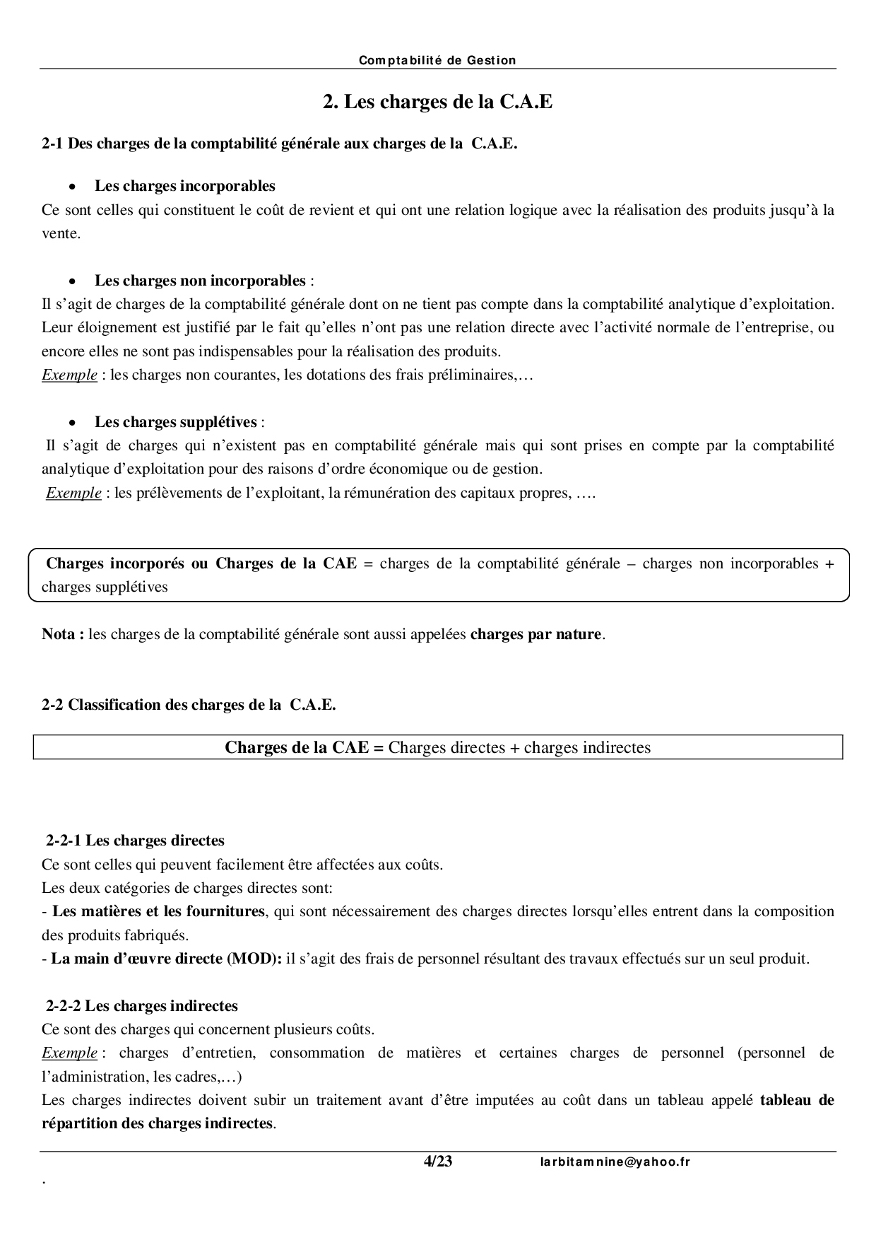 Les charges de la C.A.E