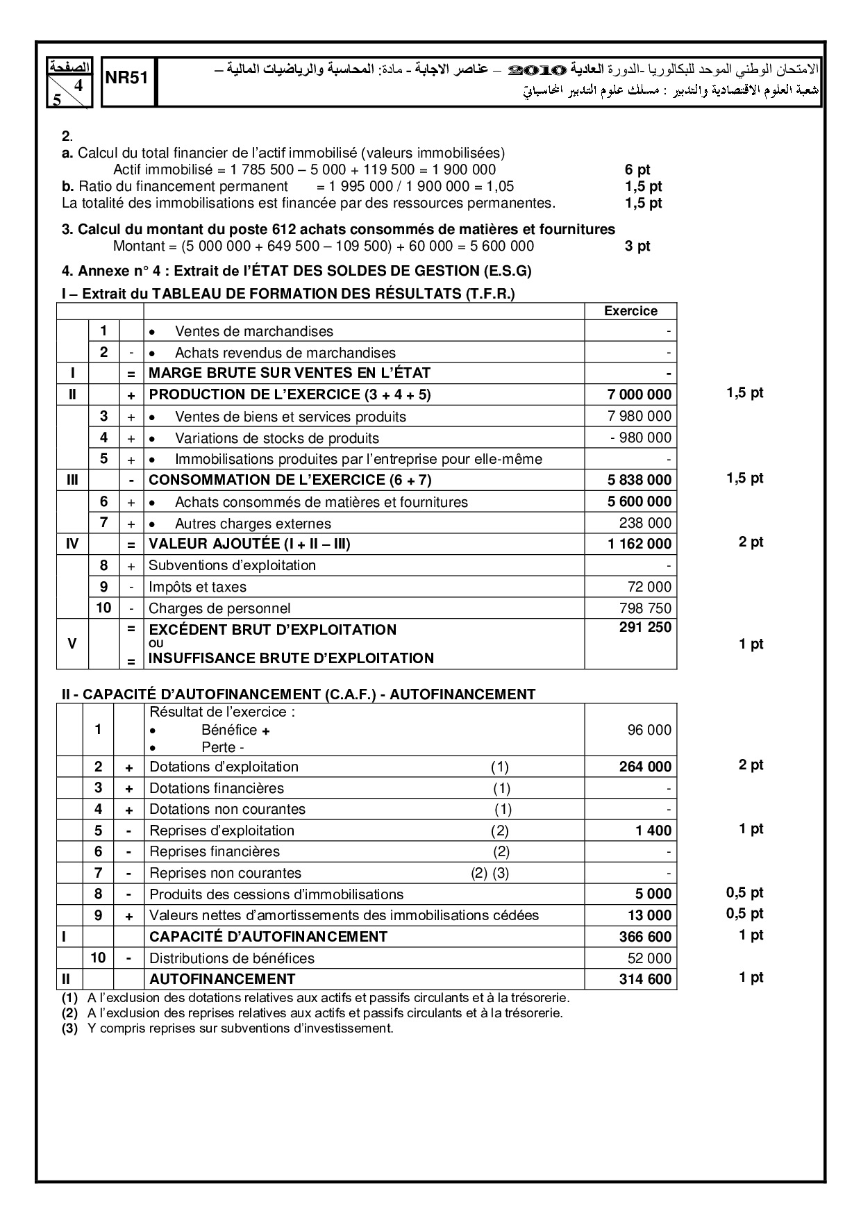 Examen Comptabilité 2 Bac SGC 2010 Session Normale - Corrigé