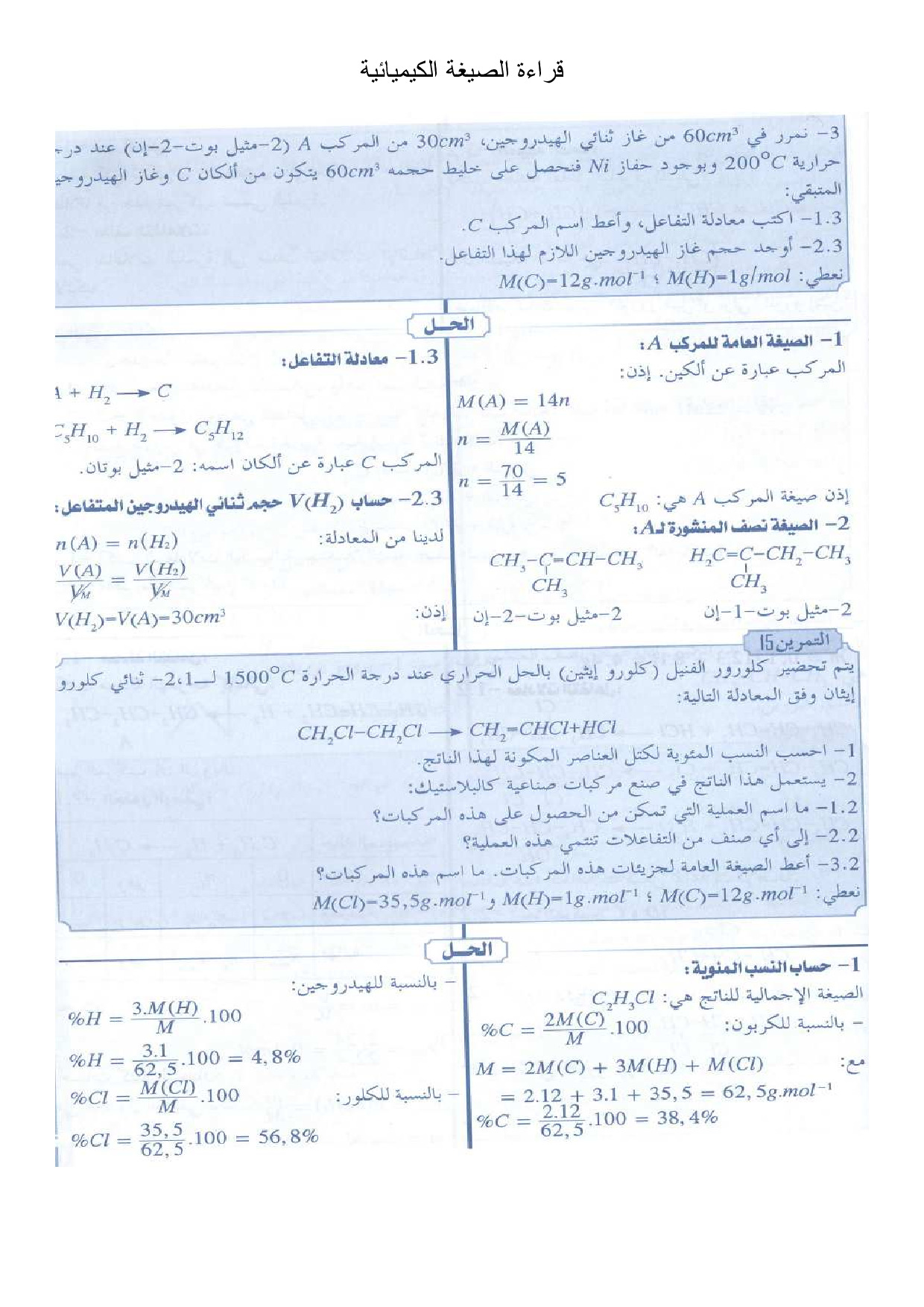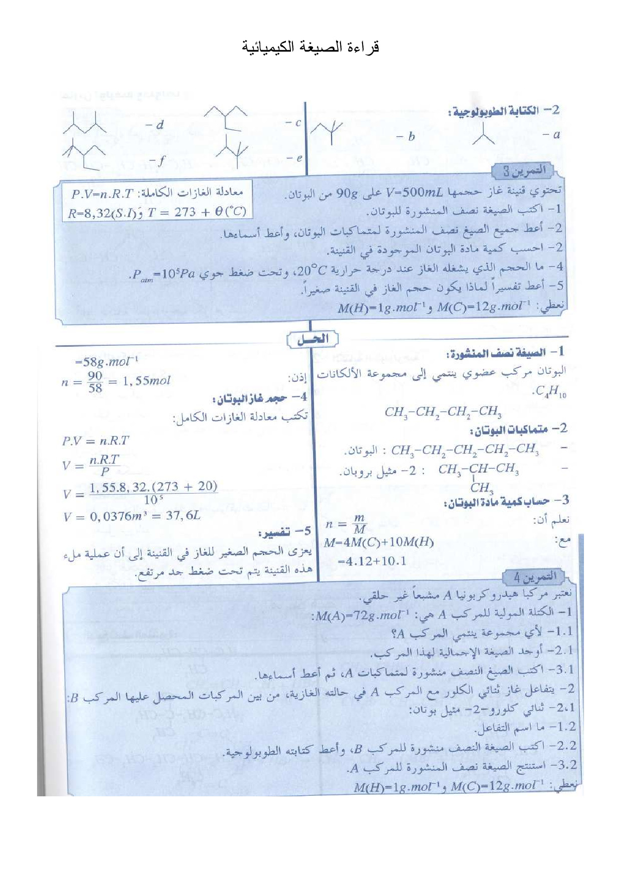 الجزيئات العضوية والهياكل الكربونية - تمارين محلولة 1