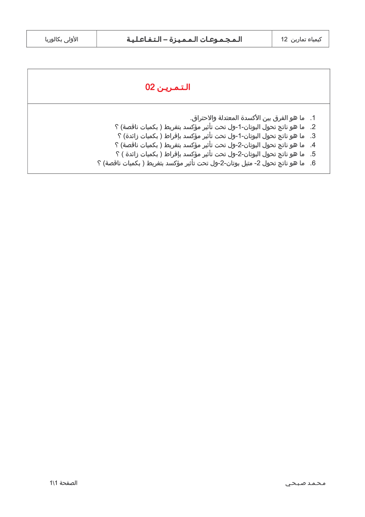 المجموعات المميزة في الكيمياء العضوية - سلسلة التمارين 2