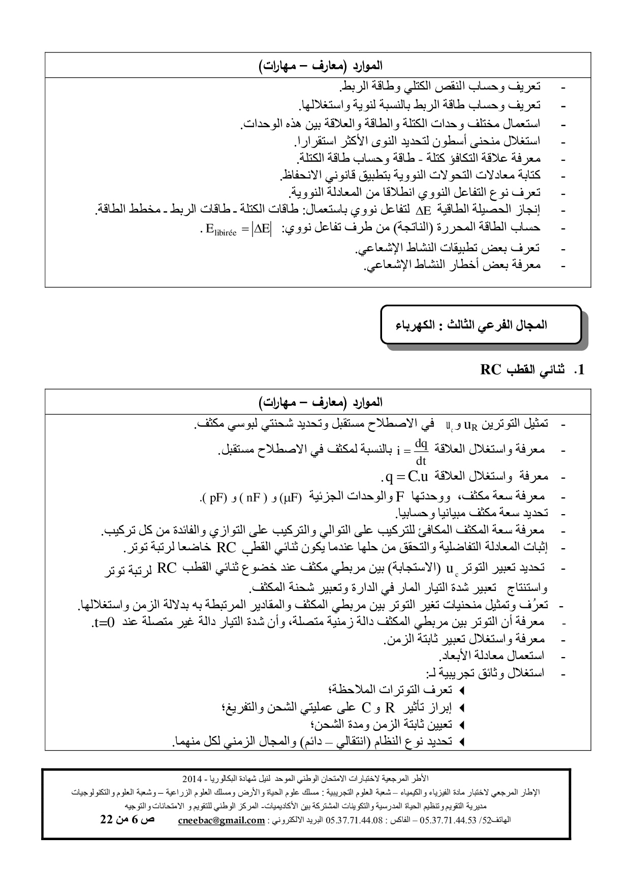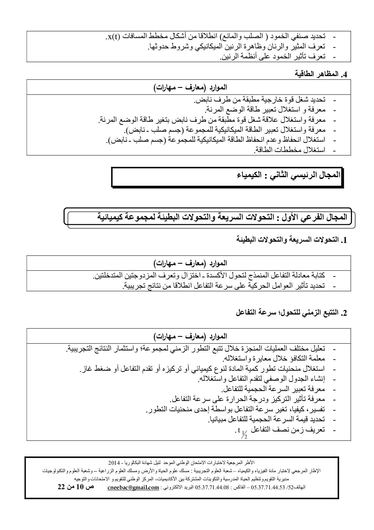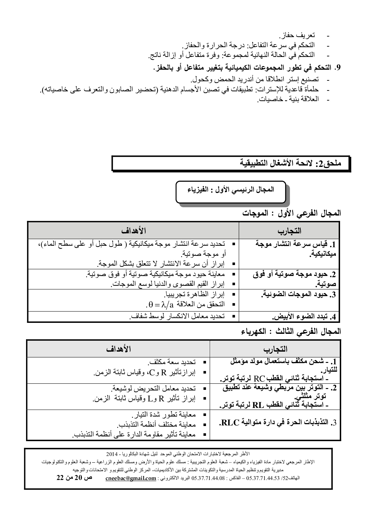الفيزياء والكيمياء: الثانية باك علوم الحياة والأرض