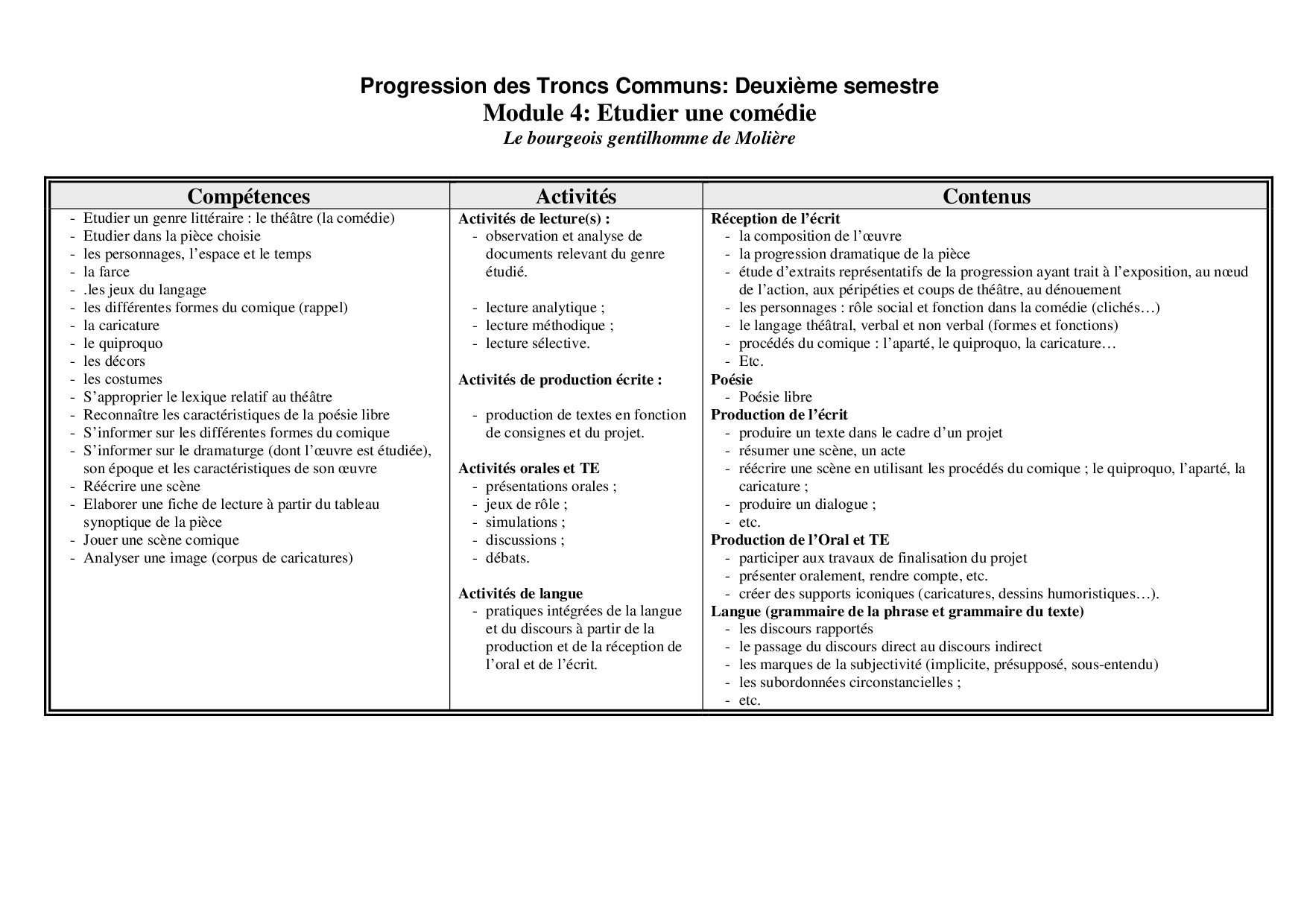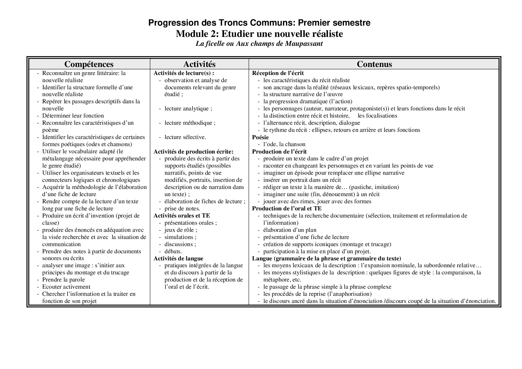 Français: Tronc commun Technologique