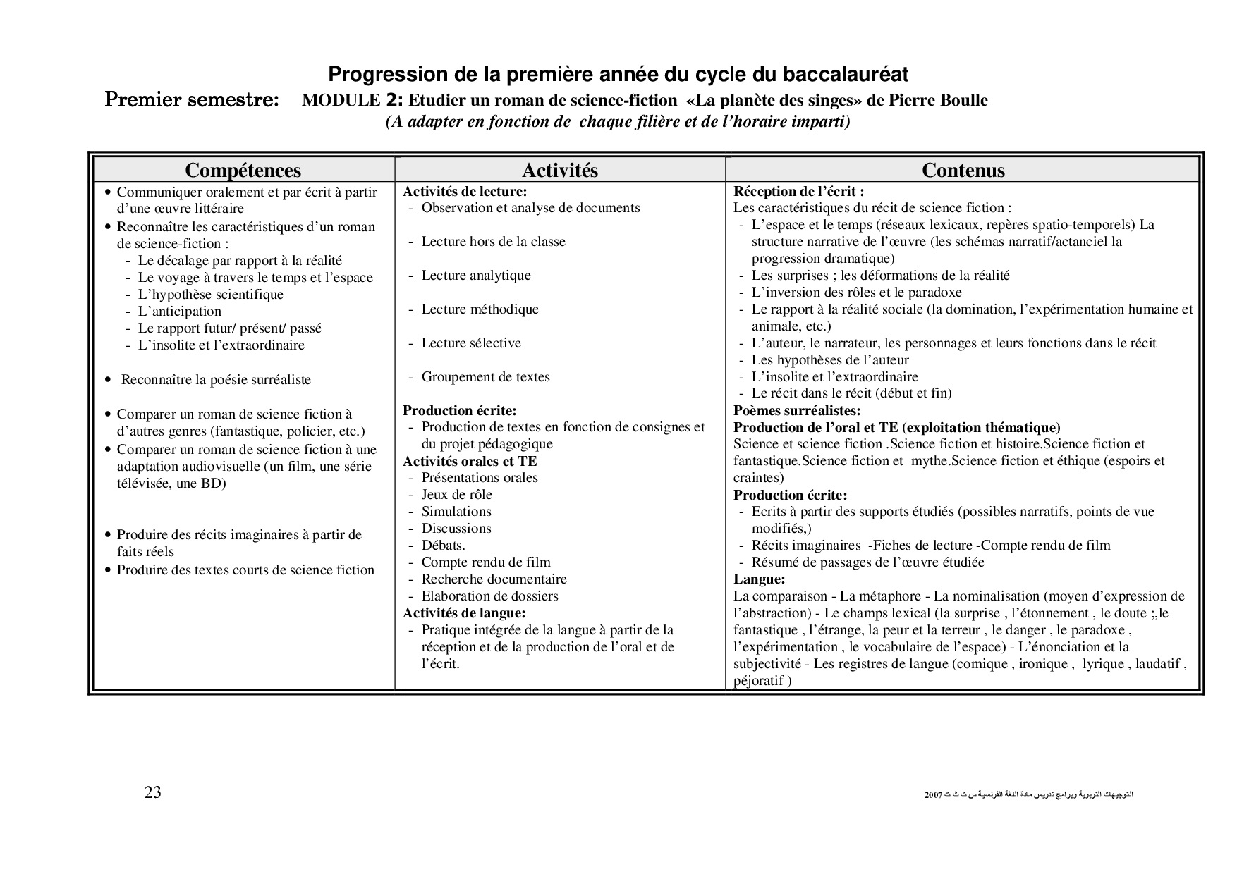 Programme pédagogique - Français 1 Bac