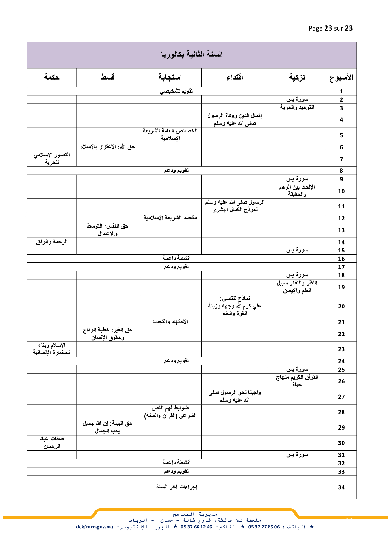 التربية الإسلامية: الثانية باك علوم رياضية أ