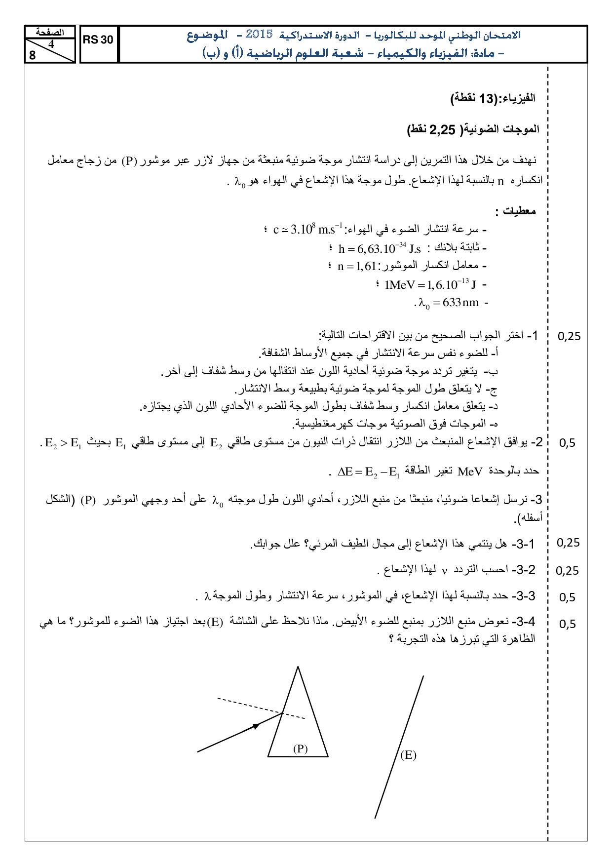 الفيزياء والكيمياء علوم رياضية 2015 الدورة الإستدراكية - الموضوع