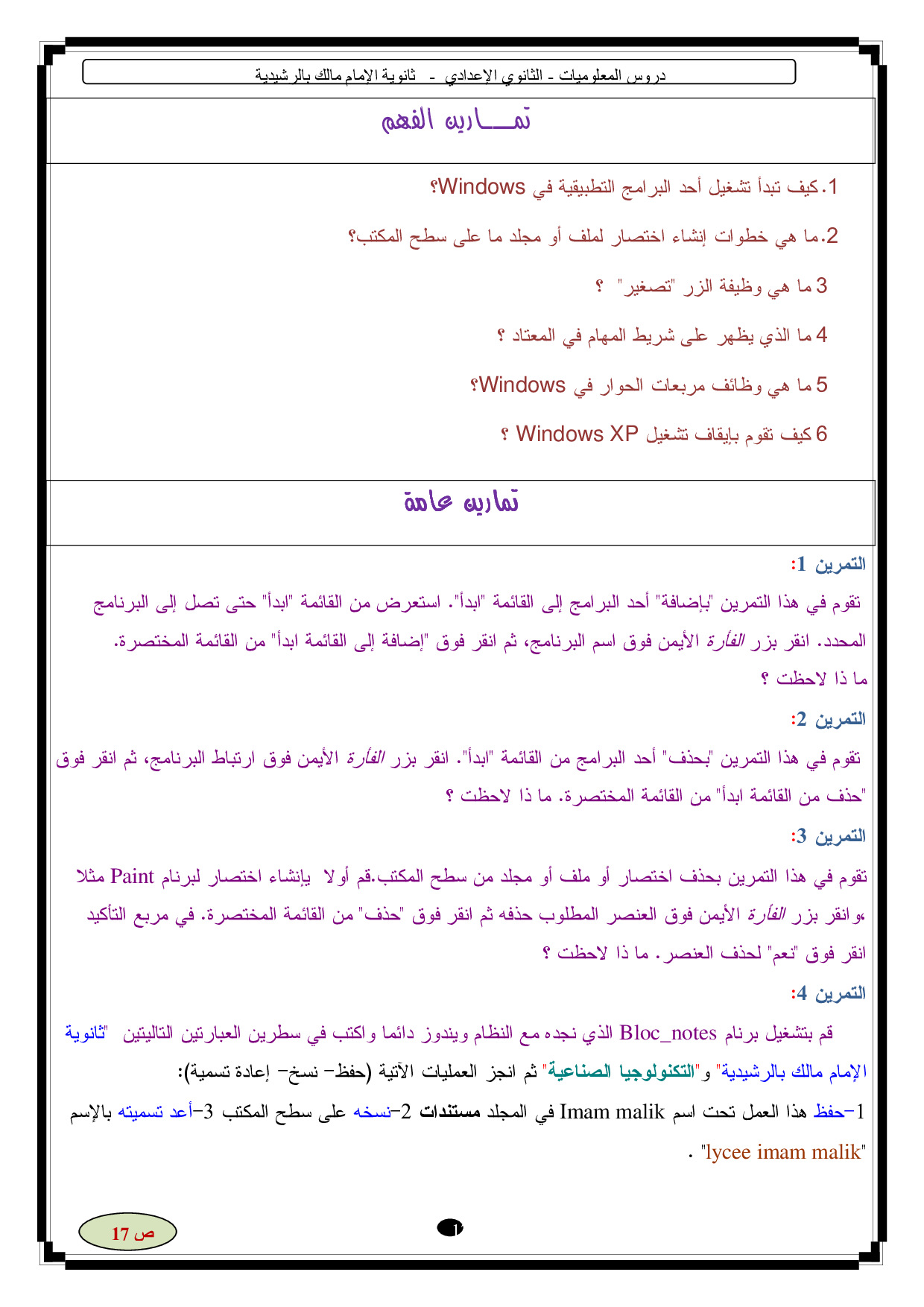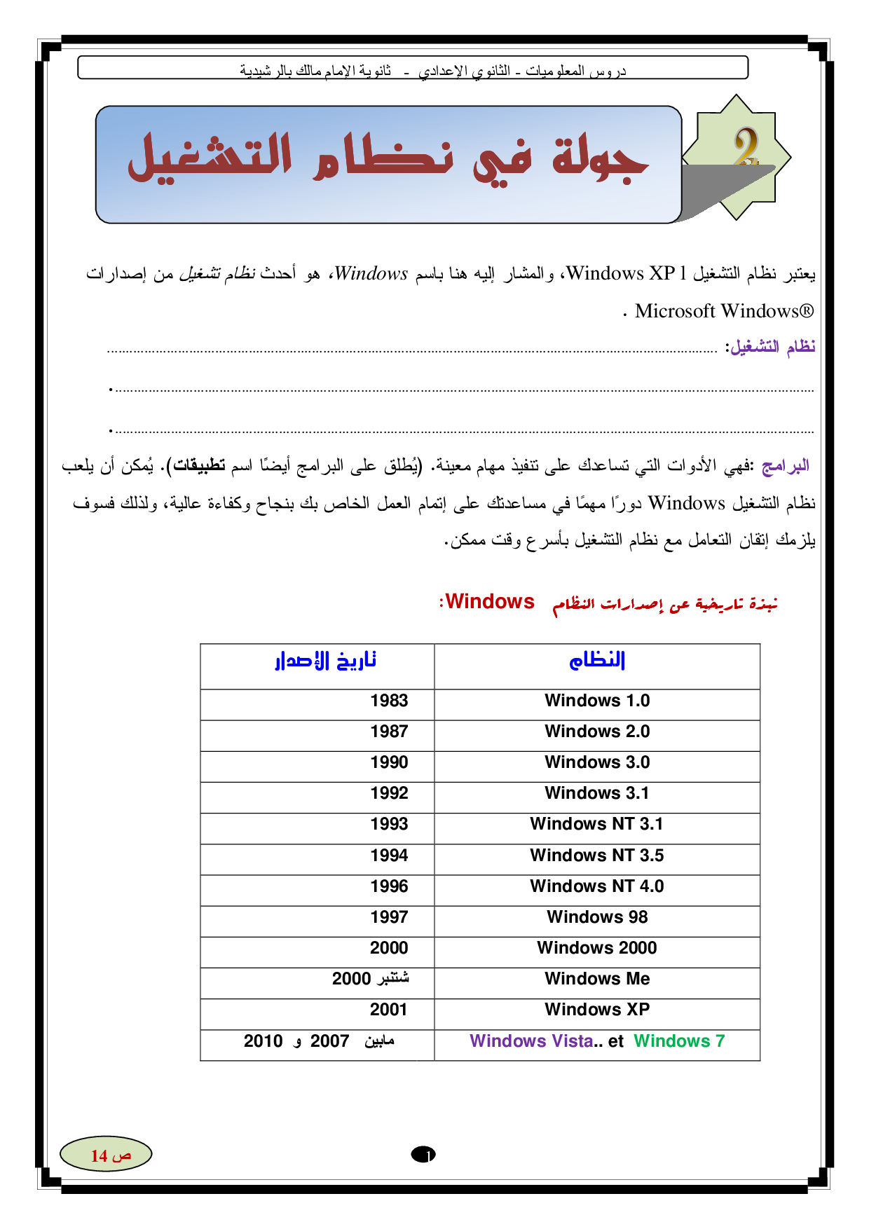 Cours d'Informatique en Arabe