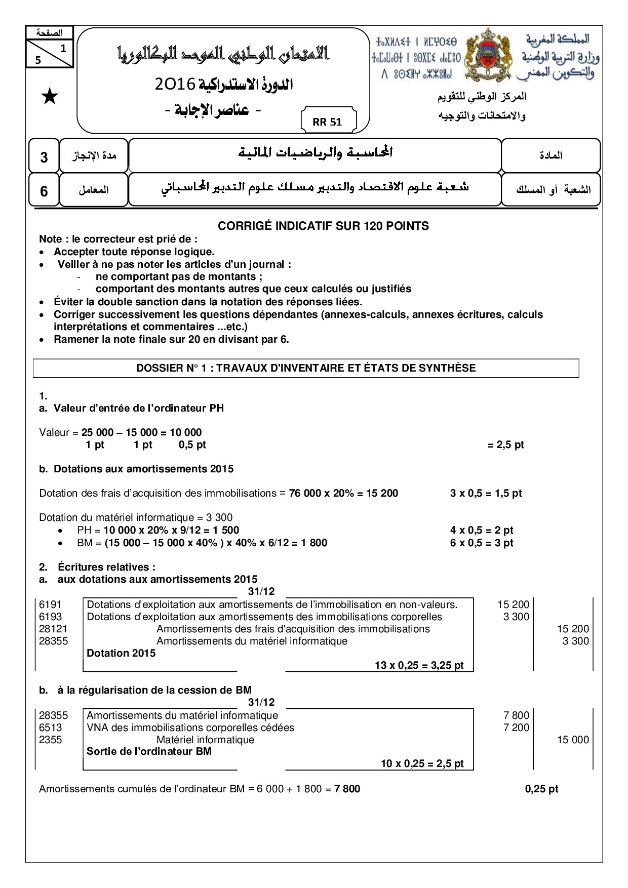 Examen Comptabilité 2 Bac SGC 2016 Session Rattrapage - Corrigé