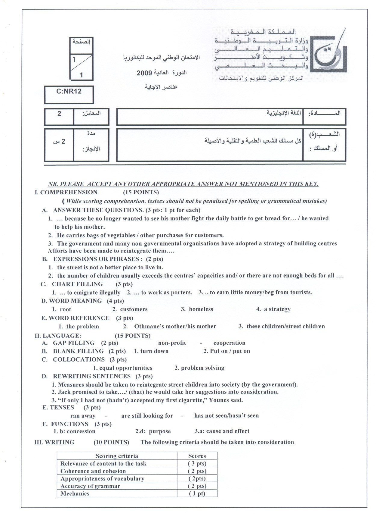 Examen Anglais 2009 Session Normale - Corrigé