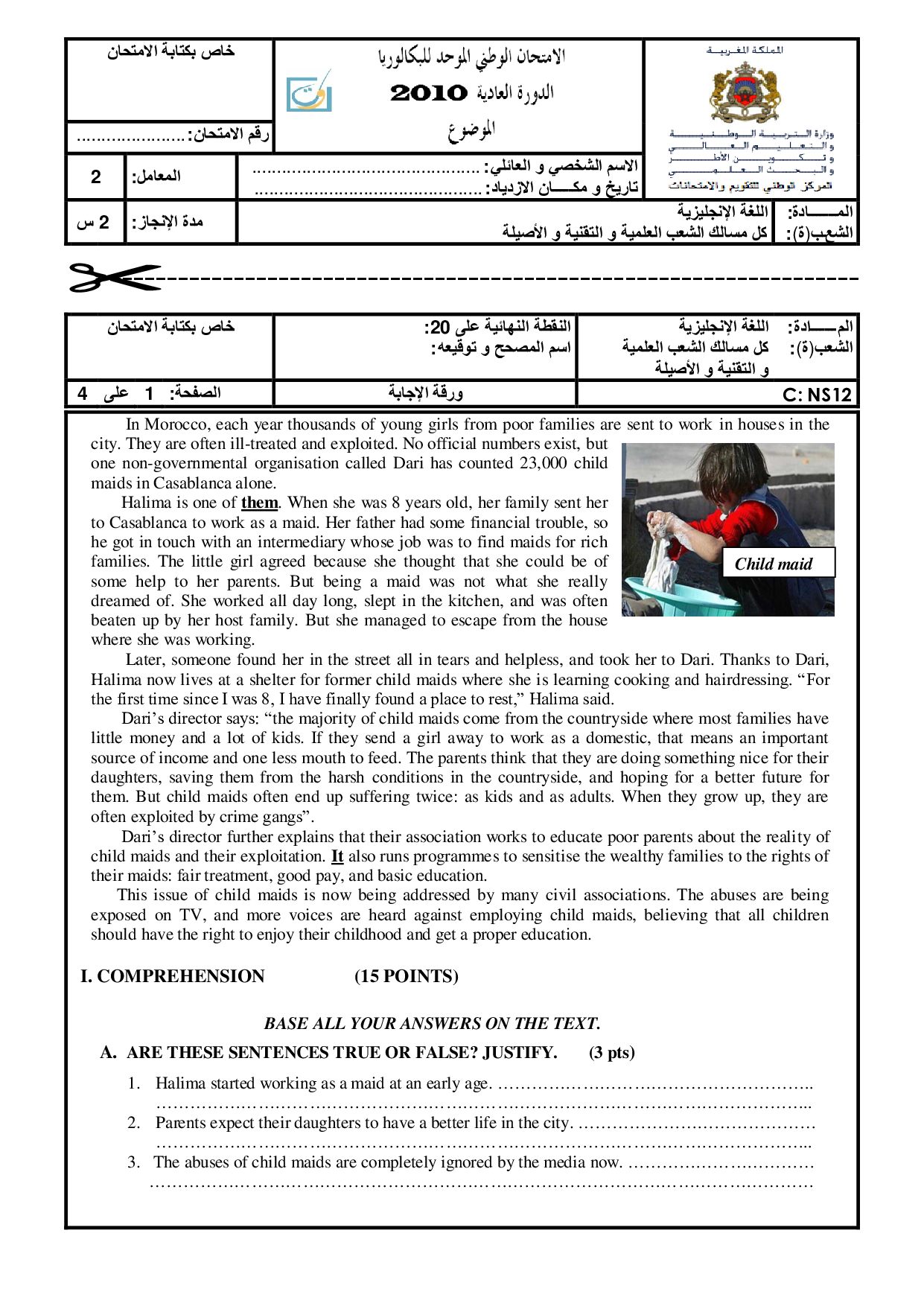 Examen Anglais 2010 Session Normale - Sujet
