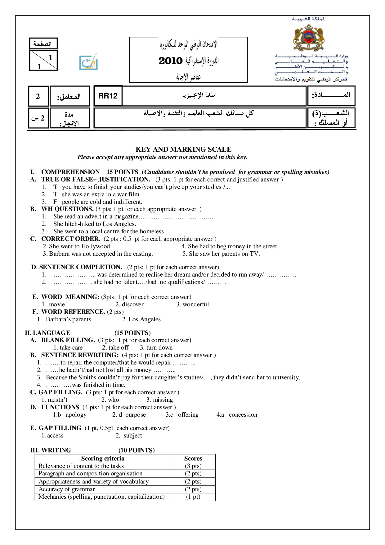 Examen Anglais 2010 Session Rattrapage - Corrigé