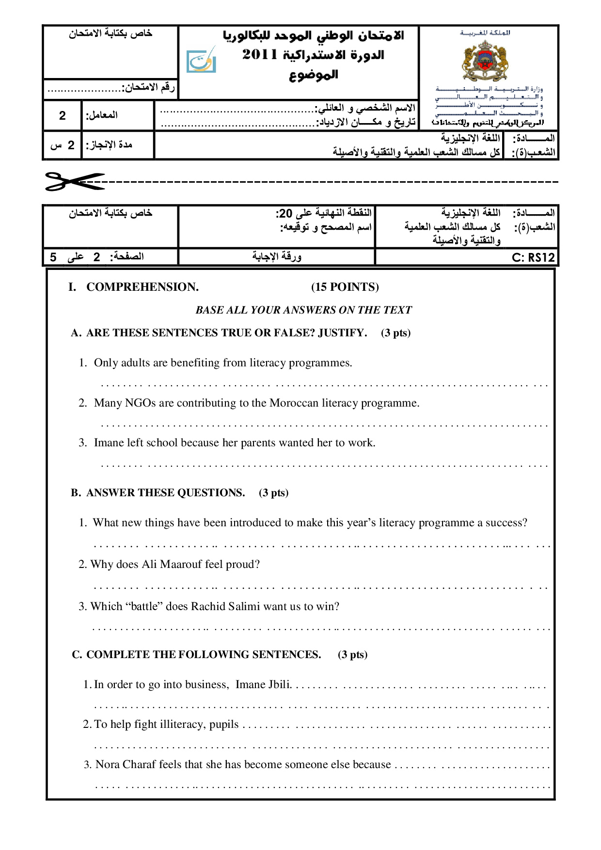 National exams with answers (Sciences)