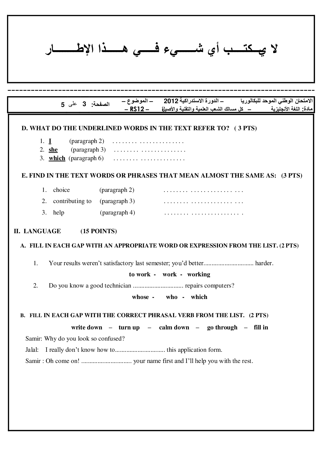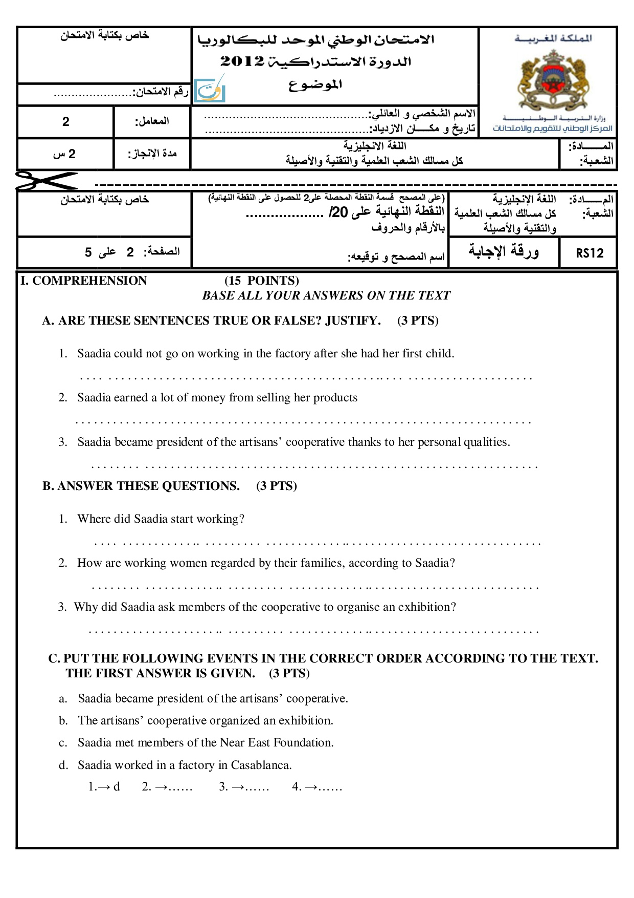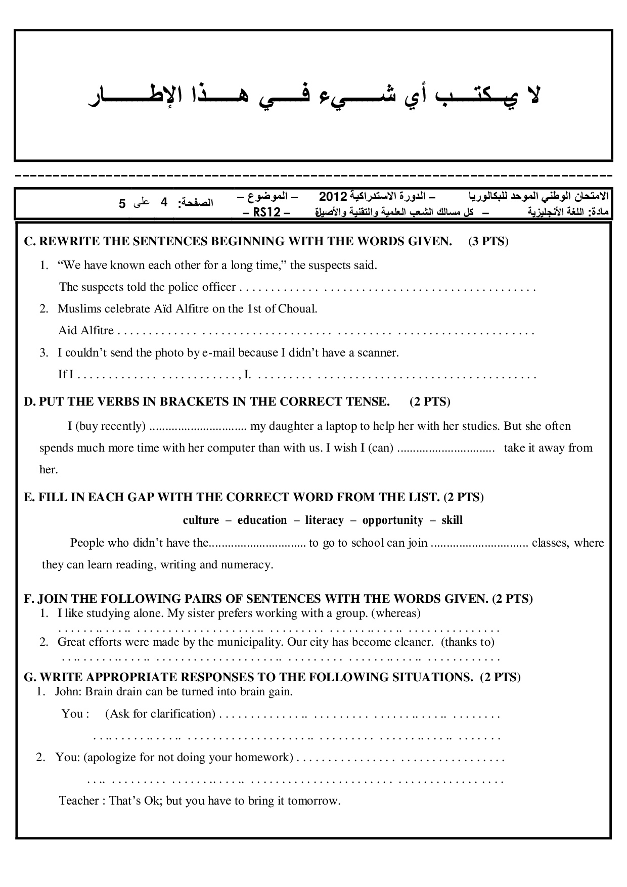 Examen Anglais 2012 Session Rattrapage - Sujet