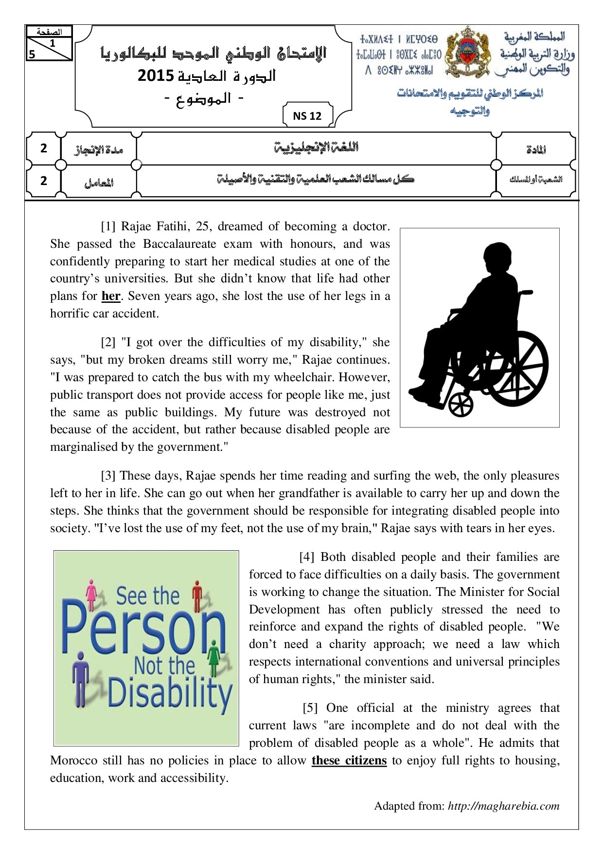Examen Anglais 2015 Session Normale - Sujet