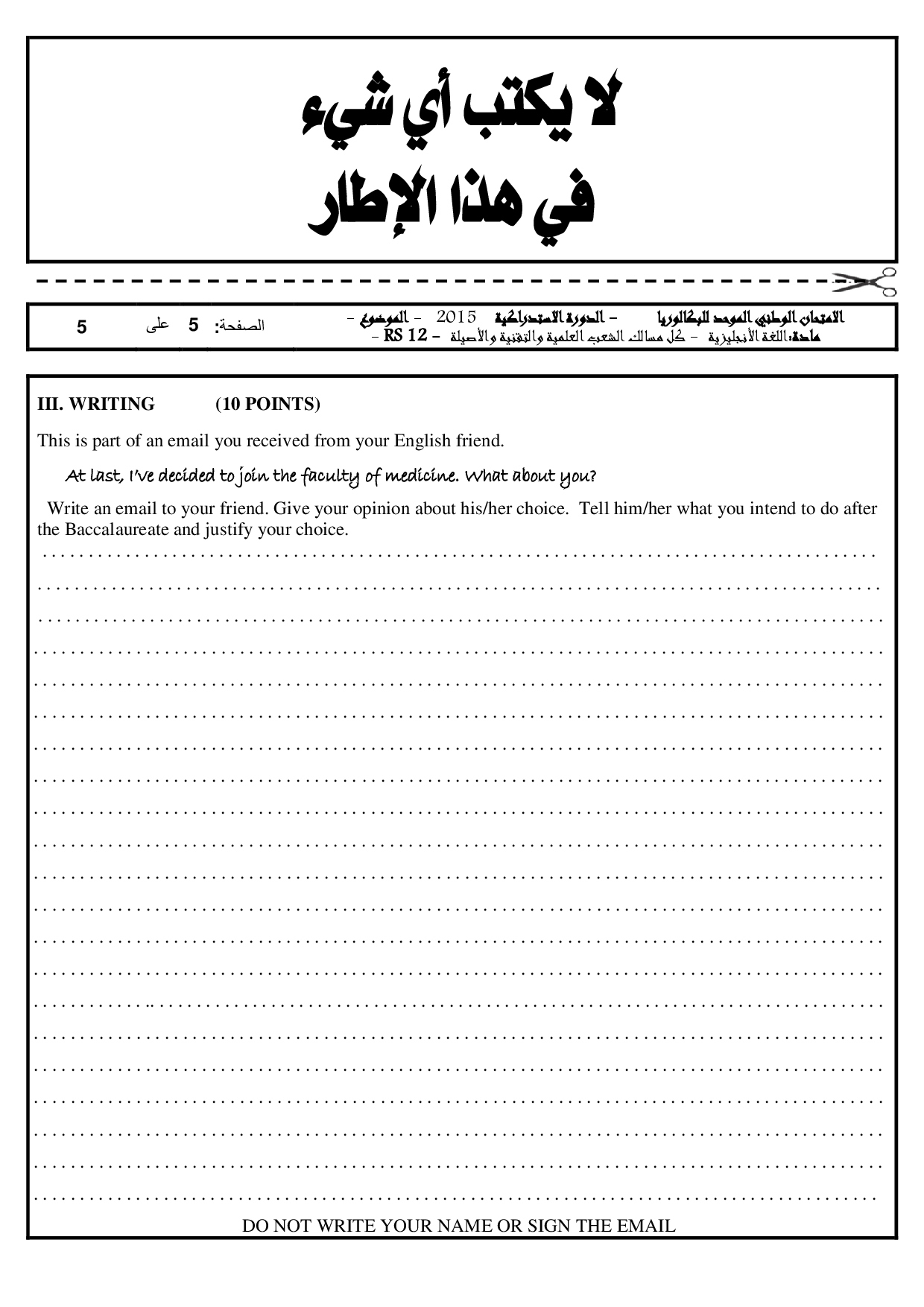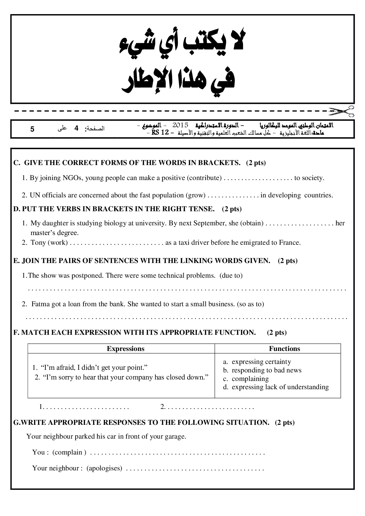 Examen Anglais 2015 Session Rattrapage - Sujet
