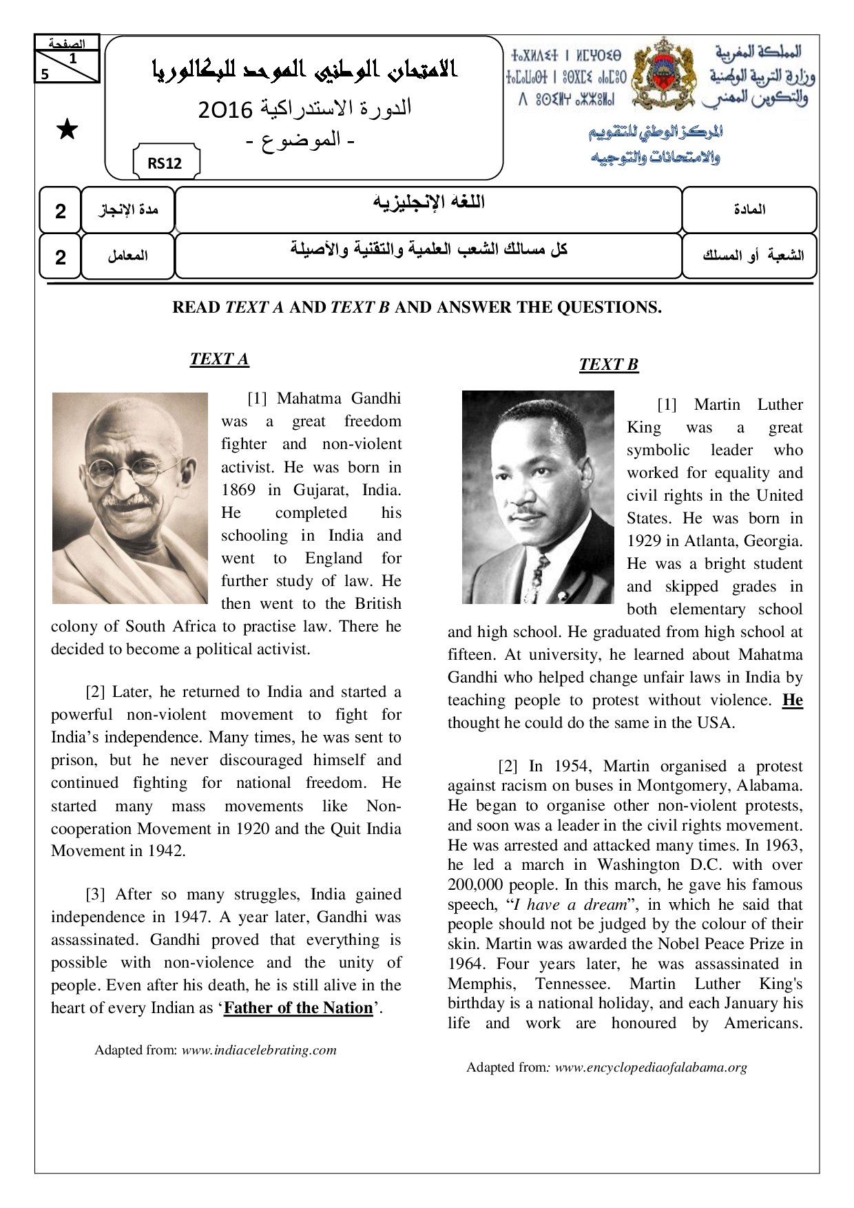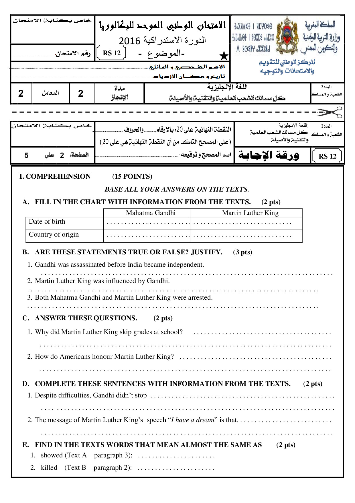 Examen Anglais 2016 Session Rattrapage - Sujet