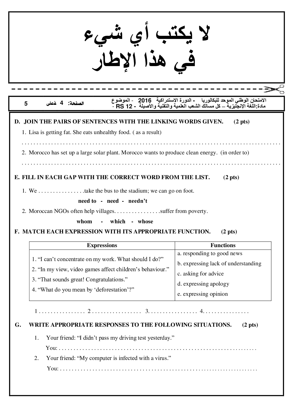 Examen Anglais 2016 Session Rattrapage - Sujet