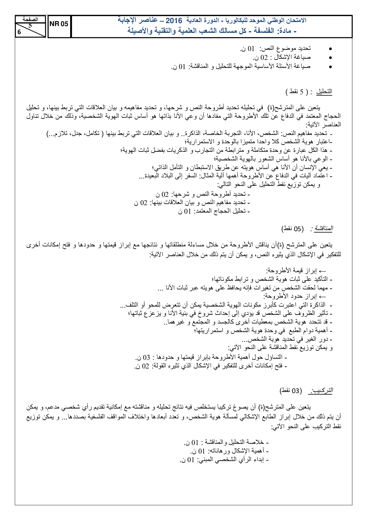 الفلسفة للشعب العلمية والتقنية 2016 الدورة العادية - التصحيح