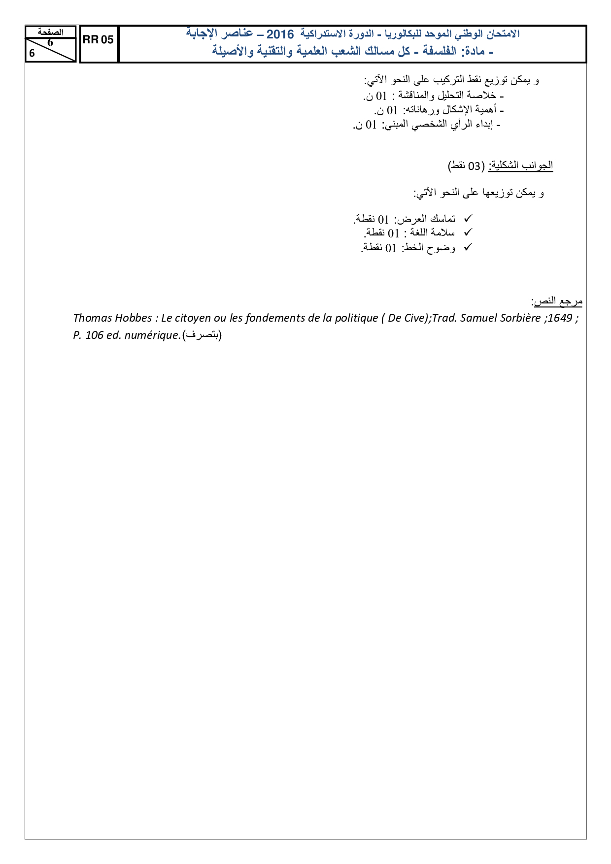 الفلسفة للشعب العلمية والتقنية 2016 الدورة الإستدراكية - التصحيح