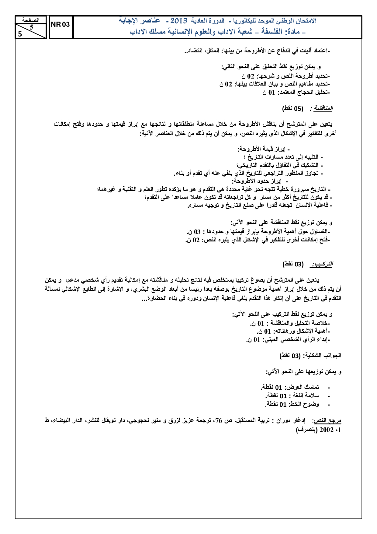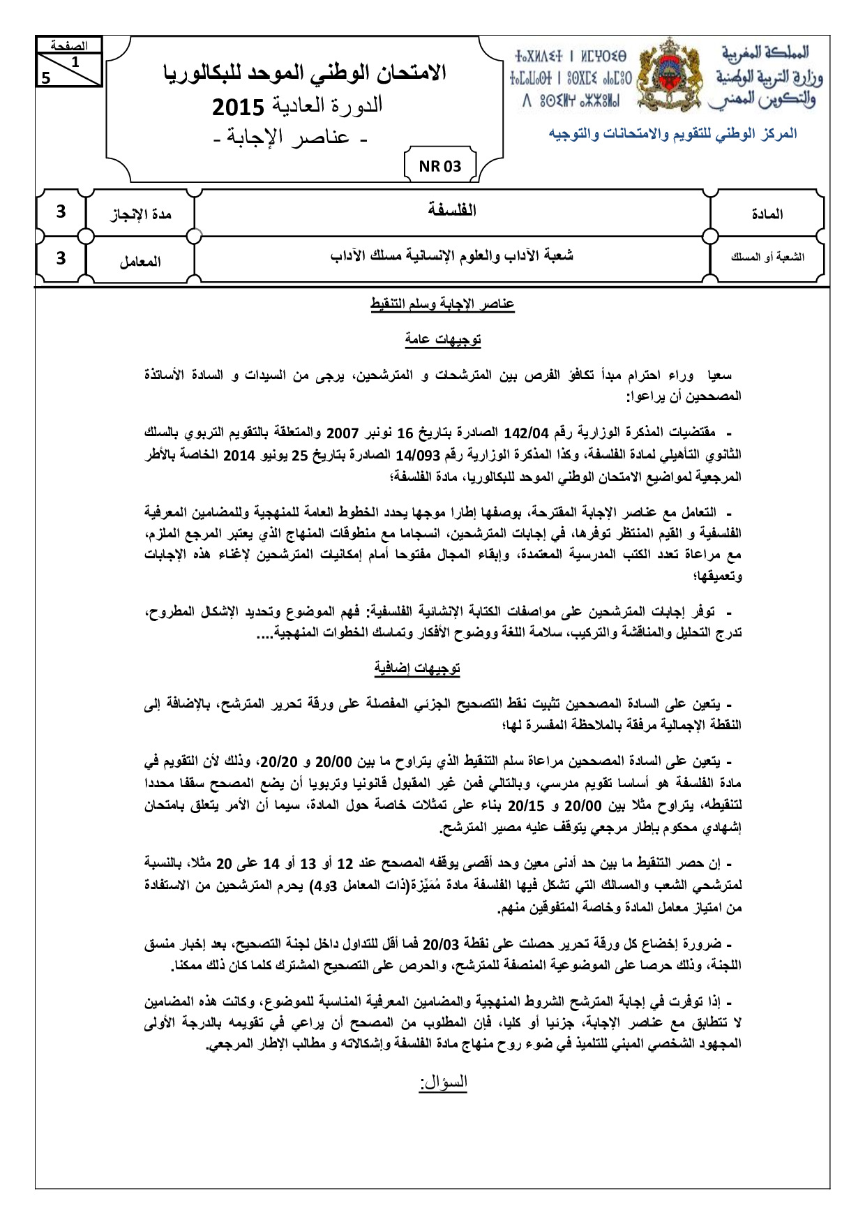 الفلسفة (شعبة الآداب) 2015 الدورة العادية - التصحيح