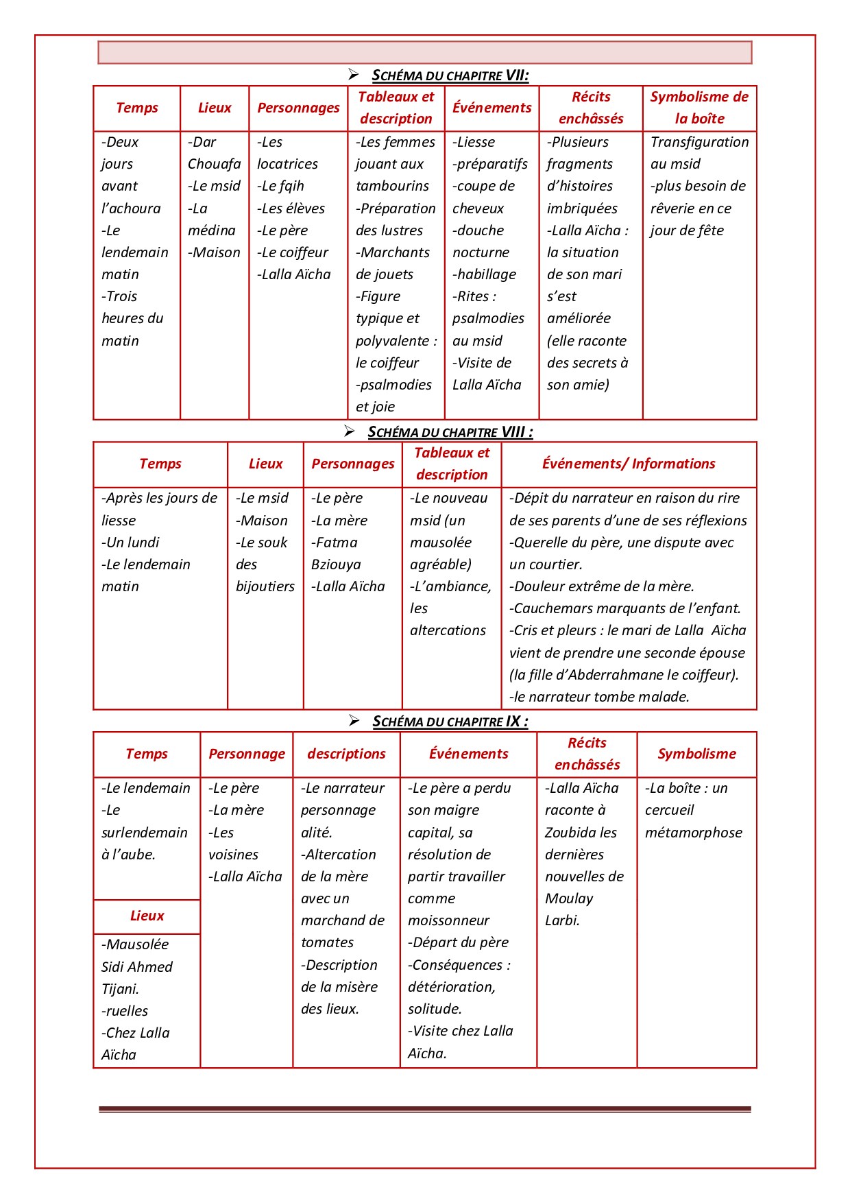 Schéma des chapitres 7, 8 et 9