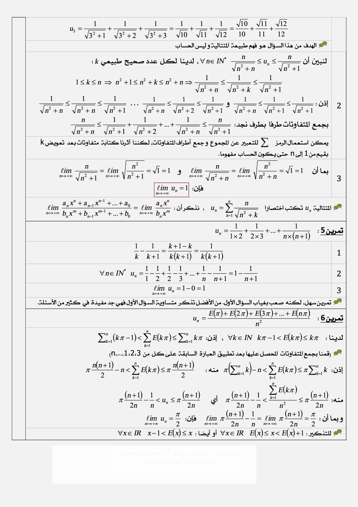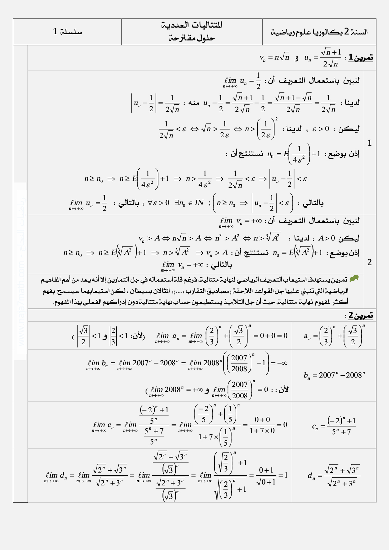المتتاليات العددية - تصحيح سلسلة التمارين 1