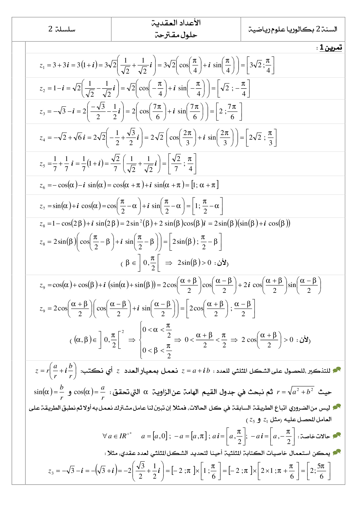 الأعداد العقدية - تصحيح سلسلة التمارين 2